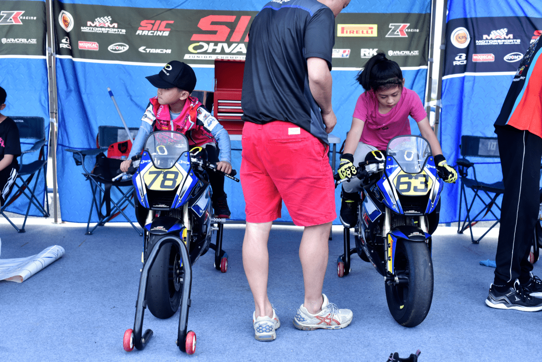 2、兩位十二歲的小車手、43 號車的陳詩瑜和 93 號車的龍俊豪,參加 FIM 迷你 GP 馬來西亞系列賽。