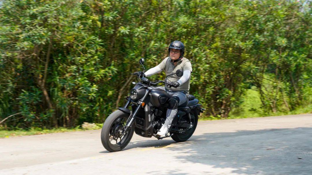 由于都是短小彎道,一路上基本是三檔四五千轉(zhuǎn)中低速試駕,可以感覺到整車 循跡性良好,沒有 傳統(tǒng)巡航車所表現(xiàn)出那種循跡性稍差的感覺,遇到短小S彎,連續(xù)大幅轉(zhuǎn)向,由于巡航車特有的33度大前傾角,靈活性上就不及運(yùn)動街車了,需要更多的轉(zhuǎn)把變線,轉(zhuǎn)彎半徑也比較大,但那是和運(yùn)動街車比,和傳統(tǒng)巡航比,就靈活太多了。