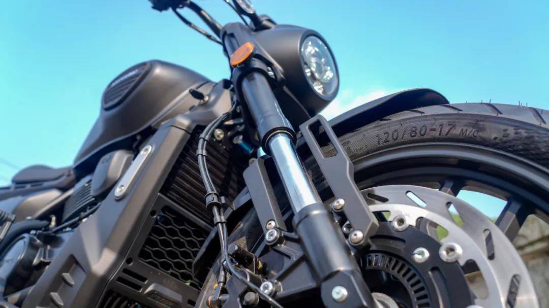 首先,整車線條是一種硬派運(yùn)動風(fēng)格,迥異于傳統(tǒng)美式巡航的那種流線型、水滴油箱的造型風(fēng)格,整車造型富有個性又非常耐看。
