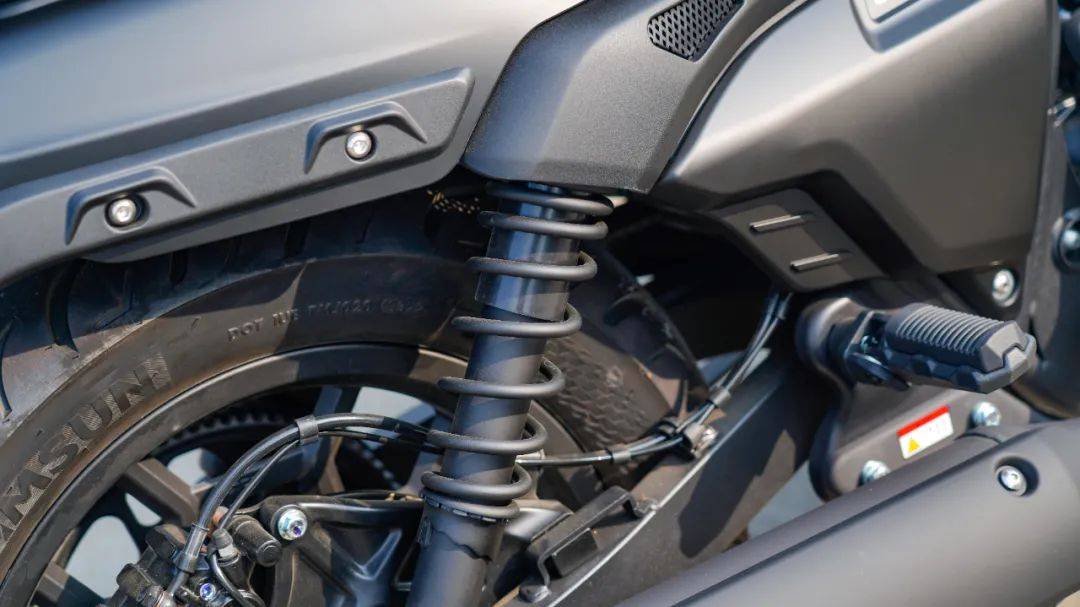 其次,巡航車的底子,高達(dá)1530mm的長軸距,超過多數(shù)300級巡航1420mm左右的軸距,可以帶來更好的高速穩(wěn)定性;明顯前置的腳踏,可以獲得舒展的巡航坐姿,巡航車常用的33度前傾角,可以獲得更強(qiáng)的穩(wěn)定性和平衡性。