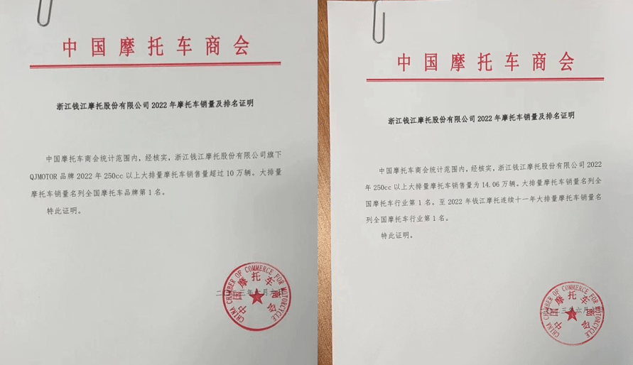 由于摩托車行業(yè)和汽車產(chǎn)業(yè)不同,行業(yè)銷量數(shù)據(jù)沒有權(quán)威的公布平臺(tái),加上買賣合格證等多種因素,普通用戶是無法獲得各企業(yè)精確銷量數(shù)據(jù)的,因此錢江的在中大排摩托車市場(chǎng)的銷售排名,中國(guó)摩托車商會(huì)(可能是唯一掌握絕大部分摩托車企業(yè)精確銷量數(shù)據(jù)的機(jī)構(gòu))還出具了證明。