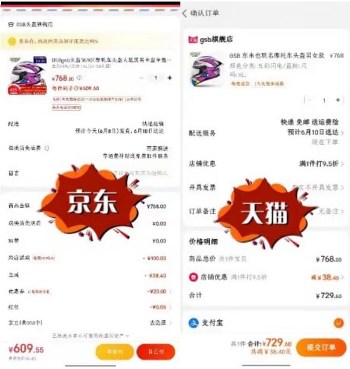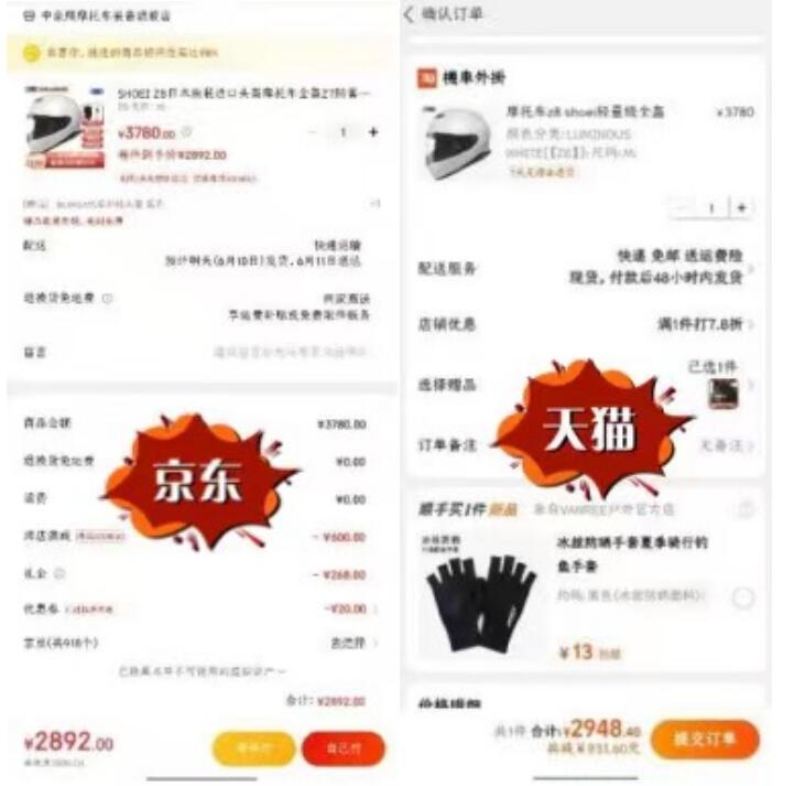 一年一度的618年中購物盛典即將來臨,各大購物平臺都開啟了價(jià)格狂歡模式,用最大的優(yōu)惠力度,讓消費(fèi)者們可以盡情剁手。對于廣大摩友來說也不例外,平日里躺在購物車?yán)锏拇笈祁^盔、騎行服、藍(lán)牙耳機(jī)、摩托車機(jī)油、輪胎、射燈、記錄儀等都有機(jī)會(huì)在618用超低的價(jià)格開心拔草。但各家優(yōu)惠政策不同,想要用最低的價(jià)格買到種草已久的騎行裝備還需要多做功課, 小編在這里幫廣大摩友們對比了京東與天貓平臺上一些熱門裝備的最終下單價(jià)格,大家盡管抄作業(yè),輕松薅羊毛。