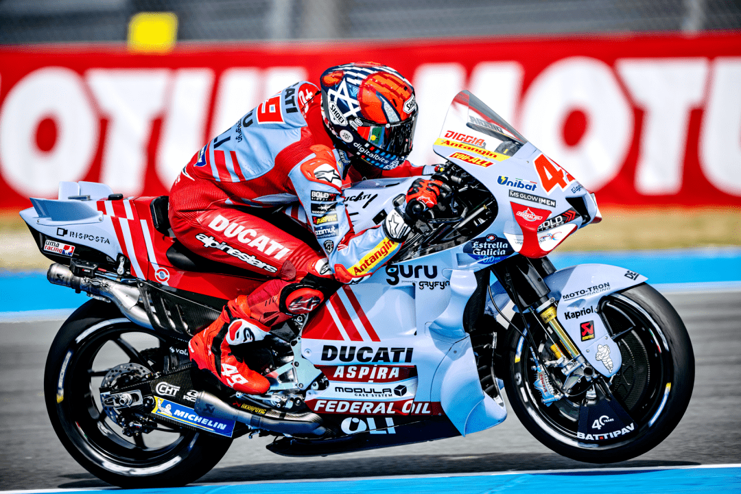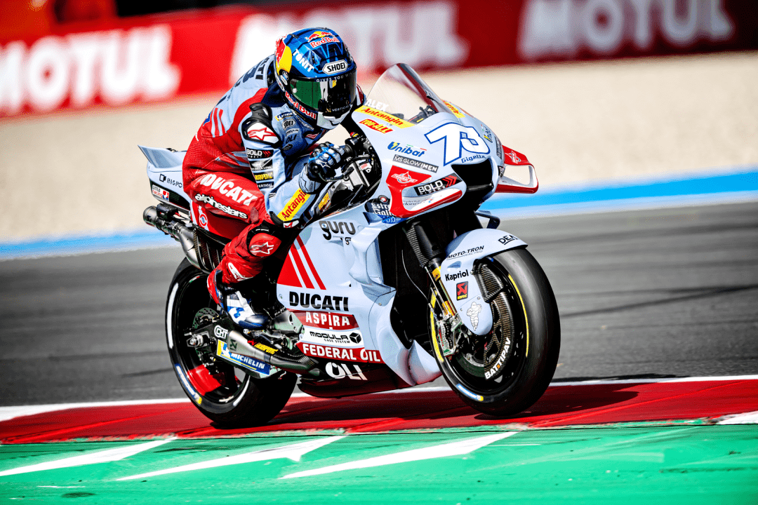 福建友力企業(yè) YOU-ALL 所支持的吉斯尼 MotoGP 車隊(duì),在周五(六月 23 日)的 MotoGP 級別兩節(jié)練習(xí)里,駕駛 73 號車、西班牙車手小馬昆斯(Alex Marquez)以全天綜合第十名的圈速,直接進(jìn)軍 Q2 排位賽;駕駛 49 號車的意大利車手吉南托里奧(Fabio Di Giannantonio),全天綜合圈速排在第十八,需要跑 Q1。