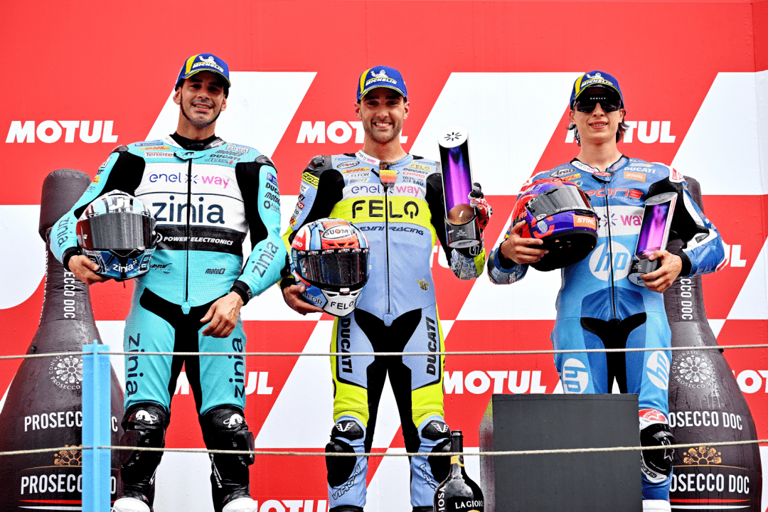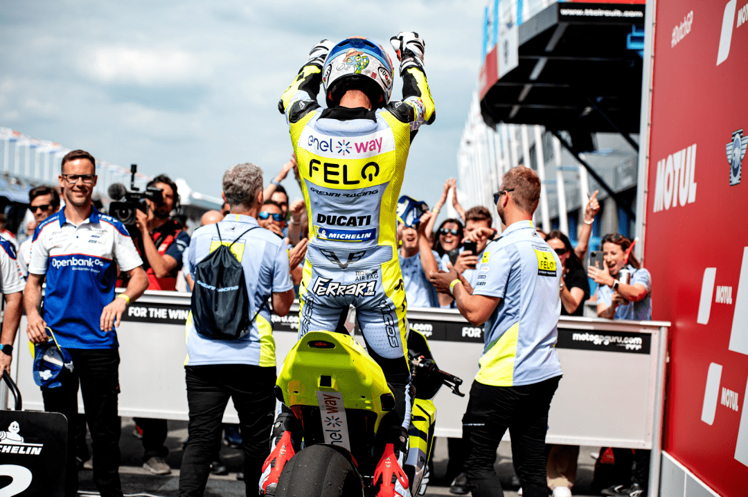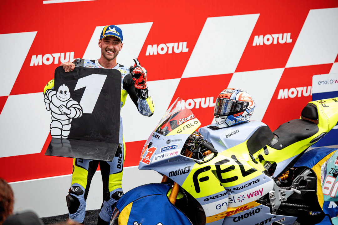FELO 上海電斐科技支持的 FELO 吉斯尼 MotoE 車隊(duì)(FELO Gresini MotoE Racing Team),在賽前、周五的排位賽里,駕駛 11 號(hào)車的意大利車手法拉利(Matteo Ferrari)拿到了第二,正式比賽將在第一排起跑;72 號(hào)車的費(fèi)內(nèi)洛(Alessio Finello)則從第十六位發(fā)車。