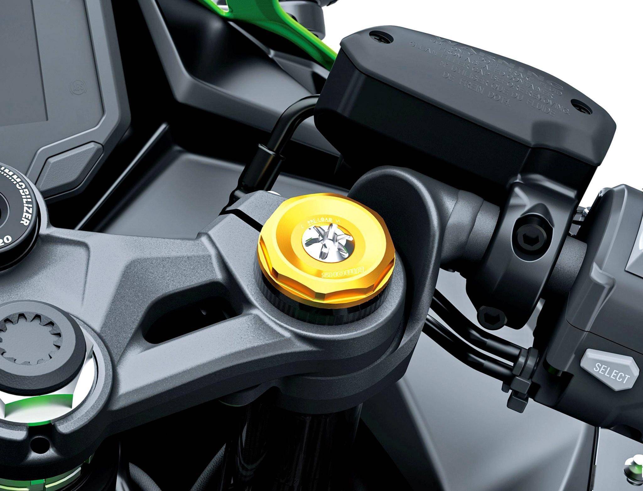 車體采用一副鋼管車架,叉芯口徑為 37 mm 的倒立式前叉,接近于水平安裝的后減震,數(shù)字式的儀表板,LED 的燈光系統(tǒng)。以基礎(chǔ)版作為藍(lán)本,SE 版增加了雙向快速換檔系統(tǒng)、茶褐色的前風(fēng)擋(歐版)、車架兩側(cè)的防摔桿;RR 版則是在 SE 版的基礎(chǔ)上,換裝了來(lái)自 Showa 昭和的 BFRC-lite 后減震。