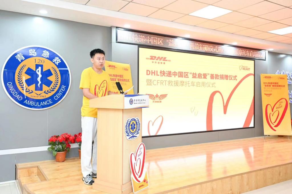 DHL快遞中國(guó)區(qū)山東分區(qū)總經(jīng)理裴明煒在捐贈(zèng)儀式上表示:“DHL快遞每年都會(huì)通過(guò)‘益啟愛(ài)’公益項(xiàng)目大力支持各項(xiàng)公益事業(yè),積極踐行公司‘讓人與人相連,改善人們生活’的企業(yè)目標(biāo)。本次捐贈(zèng),我們希望可以通過(guò)助力組建國(guó)內(nèi)首支成建制的公益摩托車救援隊(duì),進(jìn)一步提升急救志愿者的應(yīng)急響應(yīng)速度和救援能力,在應(yīng)急救援中發(fā)揮更積極的作用。”