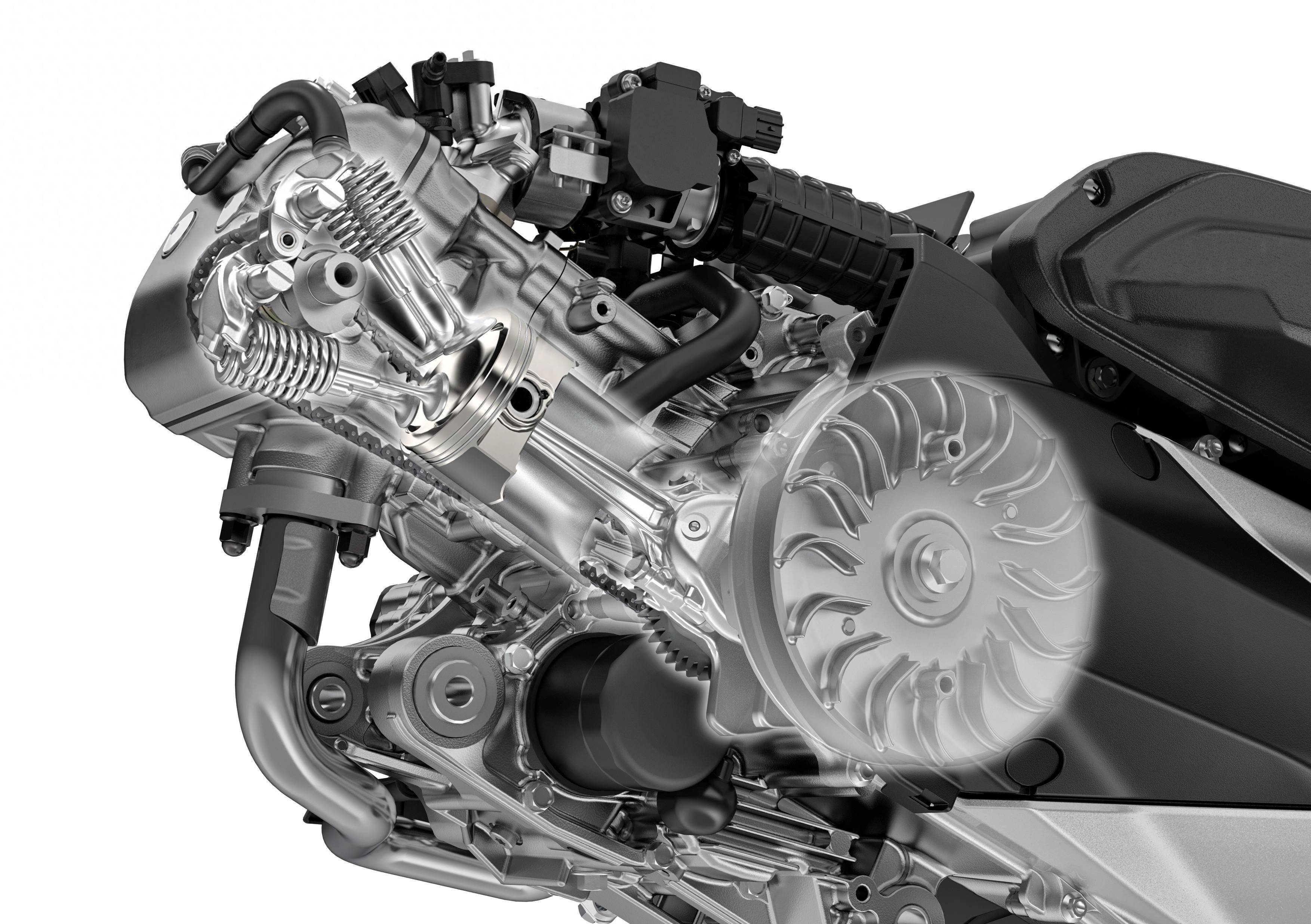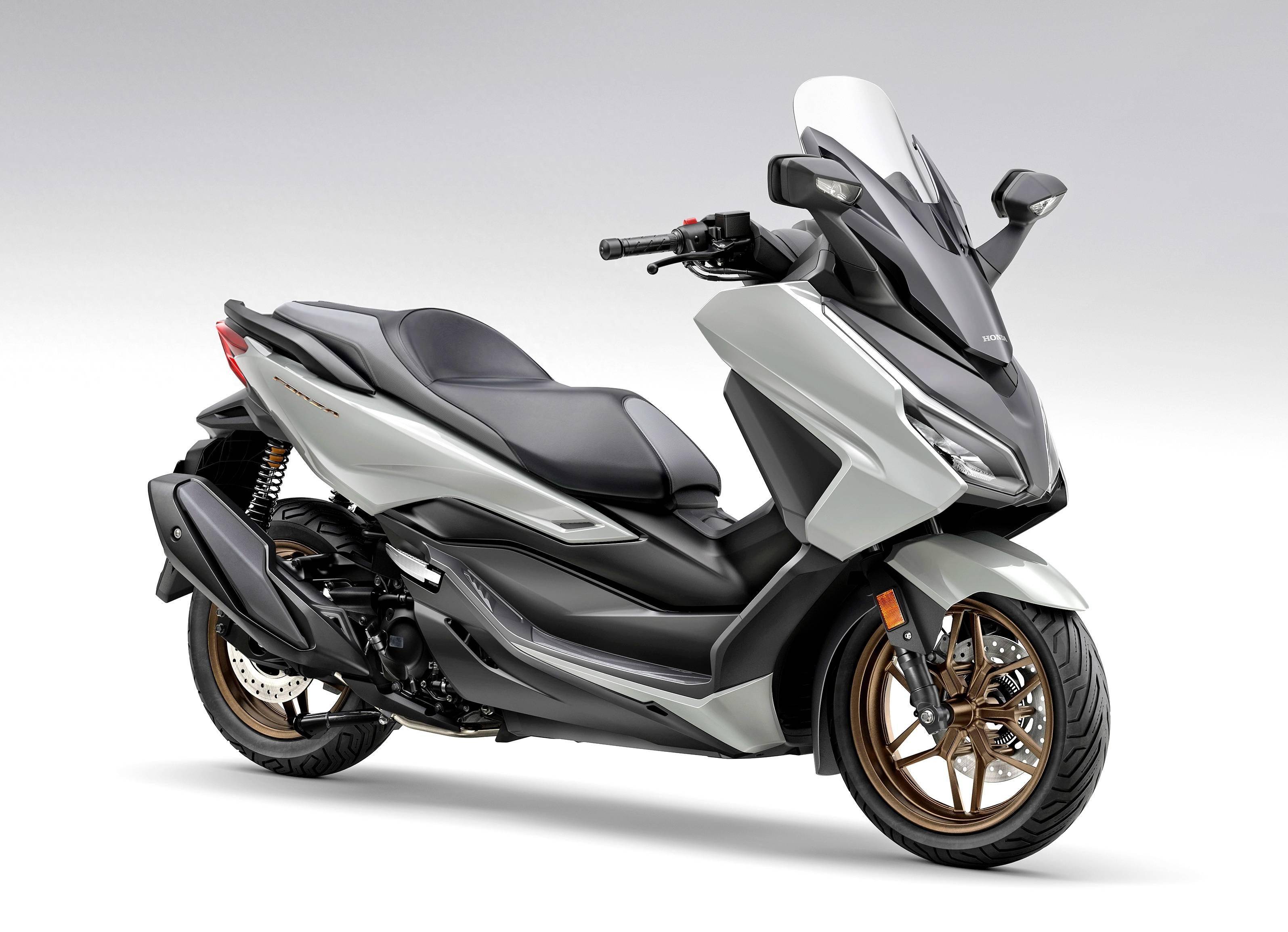標(biāo)準(zhǔn)狀態(tài)下的 NSS350 Forza 搭載一副水冷四沖程單氣缸、SOHC 四氣閥、帶 eSP + 標(biāo)簽的發(fā)動(dòng)機(jī),排氣量 330 cc,最大馬力輸出 21.6 kw。配備了 HSTC 扭矩控制系統(tǒng)、可調(diào)的前風(fēng)擋,是這臺(tái)中型踏板的亮點(diǎn)。該車目前在國(guó)內(nèi)的制造商官方零售參考價(jià)為 4.98 萬(wàn)元。