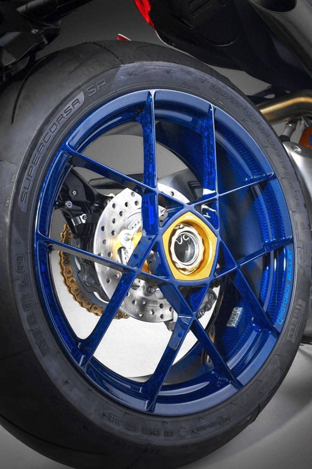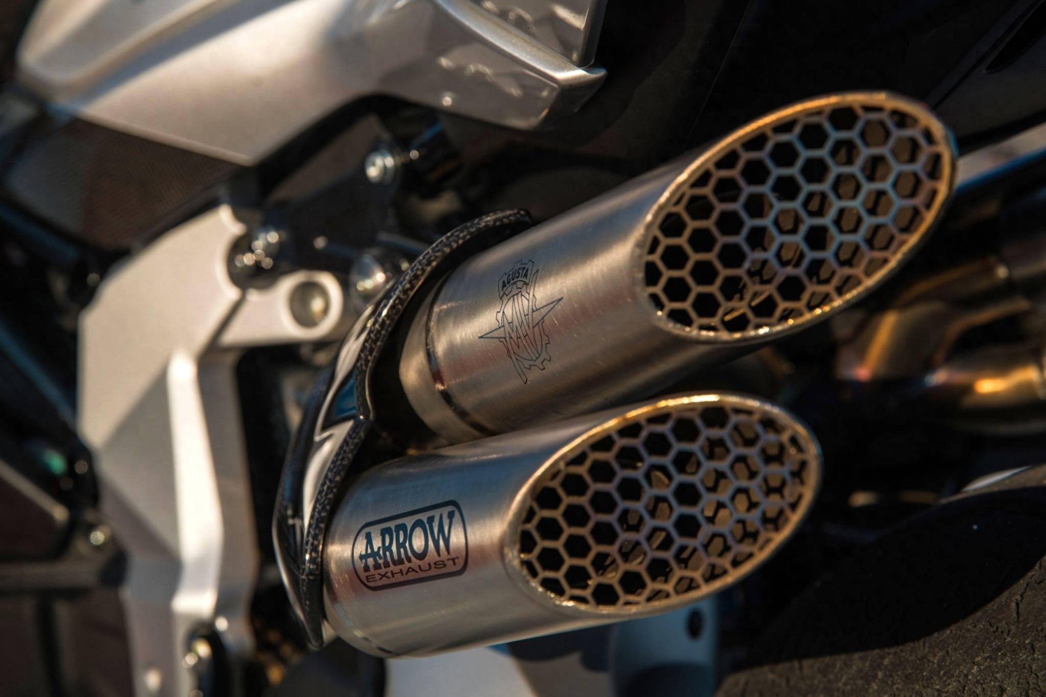 新車基于 Brutale 1000 RR 修改而成,沿用了 RR 版現(xiàn)成的直列四氣缸、排氣量 998 cc、峰值馬力輸出 208 匹的發(fā)動(dòng)機(jī),車體采用了藍(lán)色、銀色和金色混合的獨(dú)特圖案,換裝了大量碳纖維制的組件、定制的藍(lán)色前后鞍座,車體多處帶紀(jì)念標(biāo)志等,全車干燥重量(不含燃料和潤滑油、冷卻液等)為 180 公斤,略低于 RR 版的 186 公斤。