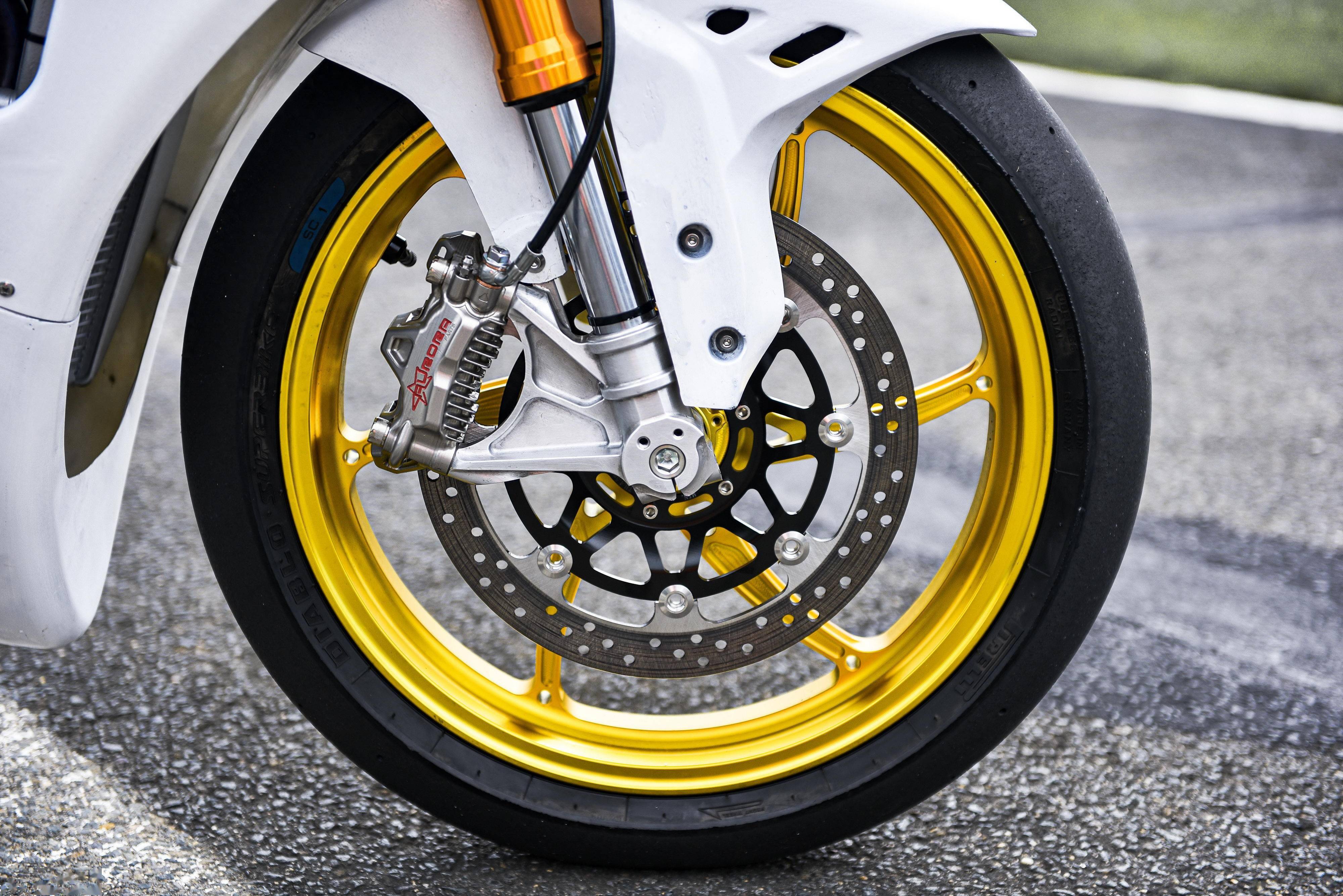5、前 3.0 x 17、后 4.0 x 17 的鋁合金鍛造車輪;