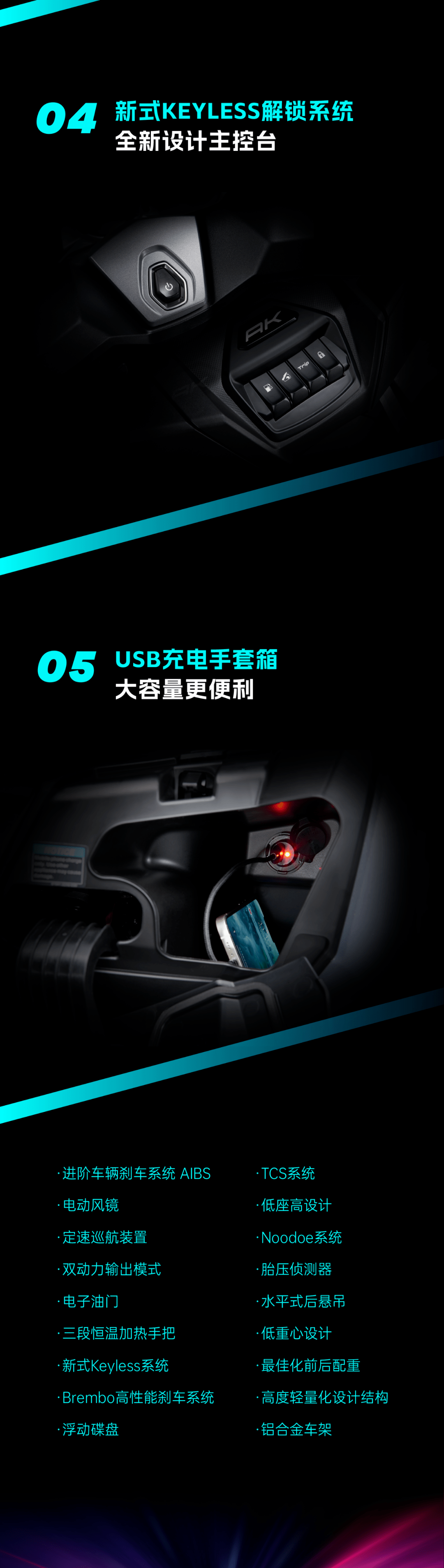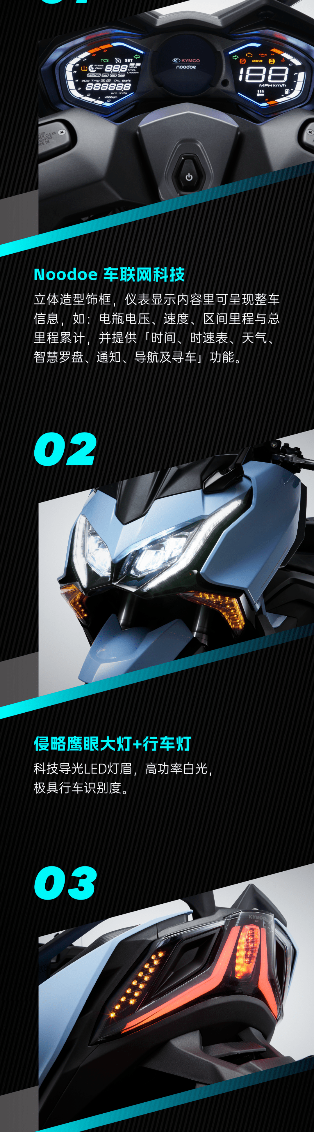 其次升級(jí)了電動(dòng)風(fēng)擋,可實(shí)現(xiàn)最高最低8.5厘米的高差,以及全新的無(wú)鑰匙系統(tǒng)。最后,AK550II 搭載了新一代的Bosch 9.1MP ABS,內(nèi)部設(shè)有剎車壓力感測(cè)器,能在ABS 做動(dòng)時(shí)主動(dòng)配合剎車力道提供最適當(dāng)?shù)幕仞?。新車外部線條由較為侵略性的折線改為較為平緩收斂的造型,車頭部分采用了多層浮動(dòng)式設(shè)計(jì),日行燈眉由導(dǎo)光條改為燈珠,搭配晶鉆內(nèi)構(gòu)帶來(lái)更細(xì)致的質(zhì)感。