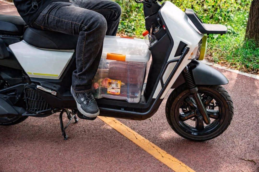 4MICA的名字源自意大利語Formica,意思是螞蟻,象征著這款車小小的身軀有著大大能量。從側(cè)面不難看出,這款車有著很長(zhǎng)的車身,軸距也來到了1400mm,在這個(gè)級(jí)別的踏板車中算是超長(zhǎng)了。長(zhǎng)軸距帶來了很多同級(jí)別踏板車沒有的承載力和實(shí)用功能。整車的軸距主要增加在了腳踏板上,這款車有一個(gè)非??鋸埖哪_踏板空間,不僅能放下成箱的水、飲料,還能放下中號(hào)外賣箱,甚至中號(hào)硬質(zhì)塑料儲(chǔ)物箱都能放下。同時(shí)在腳踏板空間的后端,還預(yù)留了擱腳空間,即便腳踏板上堆滿貨物也有地方擱腳。