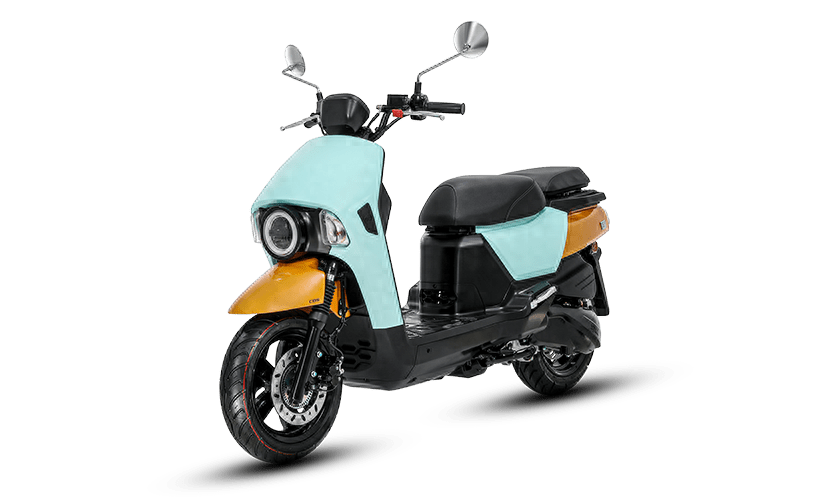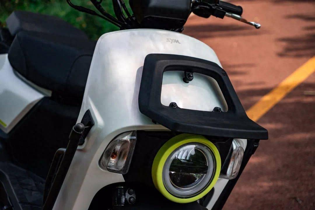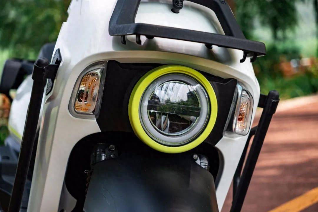 整車外觀看上去就不像一款簡(jiǎn)單的實(shí)用型踏板,車頭設(shè)計(jì)不像市面上任何一款車型,單頭燈設(shè)計(jì)加一圈熒光綠點(diǎn)綴,不僅讓這款車有了更多時(shí)尚元素,也讓這款車更加俏皮可愛。車身沒有過多的線條,更多的是硬朗的大面積拼接,尾部分體式燈具的設(shè)計(jì)則很有辨識(shí)度,讓你一眼就能認(rèn)出這款車,甚至這種偏厚重的設(shè)計(jì)還很符合它實(shí)用的定位。