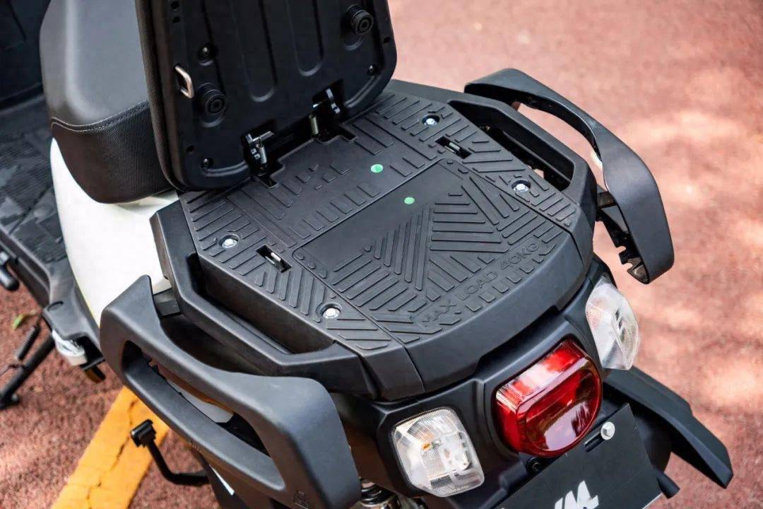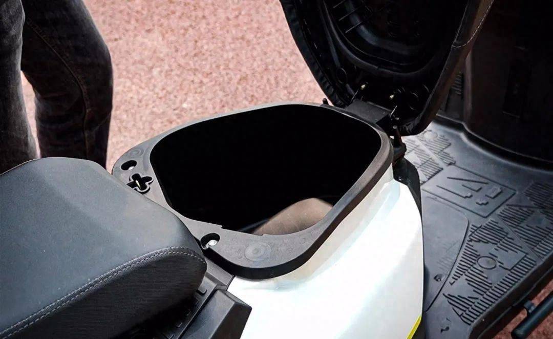 有著超強(qiáng)承載能力的小螞蟻,在常規(guī)儲(chǔ)物空間上顯得有些中規(guī)中矩。車把下方只有一個(gè)儲(chǔ)物格,能放下一瓶運(yùn)動(dòng)飲料的同時(shí)還能放下其它小件雜物。座桶空間為了給后座空間讓路,只能放下一頂不帶面鏡的小號(hào)復(fù)古四分之三頭盔??紤]到這款車腳踏板和后座的強(qiáng)大裝載能力,常規(guī)儲(chǔ)物空間的缺失也能接受,甚至這款車還可以加裝尾箱和邊包,也算是對(duì)常規(guī)儲(chǔ)物空間的進(jìn)一步拓展。