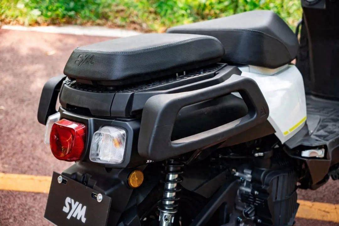 長(zhǎng)軸距不僅帶來了更大的儲(chǔ)物空間,也讓這款車的騎乘空間成為了同級(jí)別的天花板,不僅駕駛位的腿部空間優(yōu)秀,后座的空間也非常大。帶人時(shí)后座和前座中間還有一定距離,并且分體式的座墊讓后座更加寬大,加上這款車為后座設(shè)計(jì)了后腳踏,在雙人騎乘時(shí),這款車的空間表現(xiàn)不會(huì)像同級(jí)別踏板車那樣顯得局促。