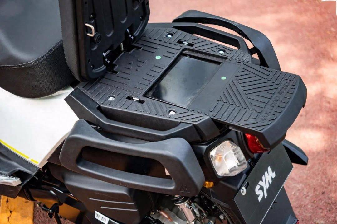 后座的儲(chǔ)物空間也是這款車的一大亮點(diǎn)??煞鄣暮笞梢栽趩稳蓑T行時(shí)當(dāng)作靠背使用,同時(shí)后座下方有一非常平整的置物空間可供使用,如果覺得空間不夠大,通過伸縮拉板還可以擴(kuò)大置物空間。這塊能承受40kg的置物空間可以用來放各種貨物,而且有了伸縮拉板,可以使貨物放置得更加穩(wěn)定,非常實(shí)用的設(shè)計(jì)。