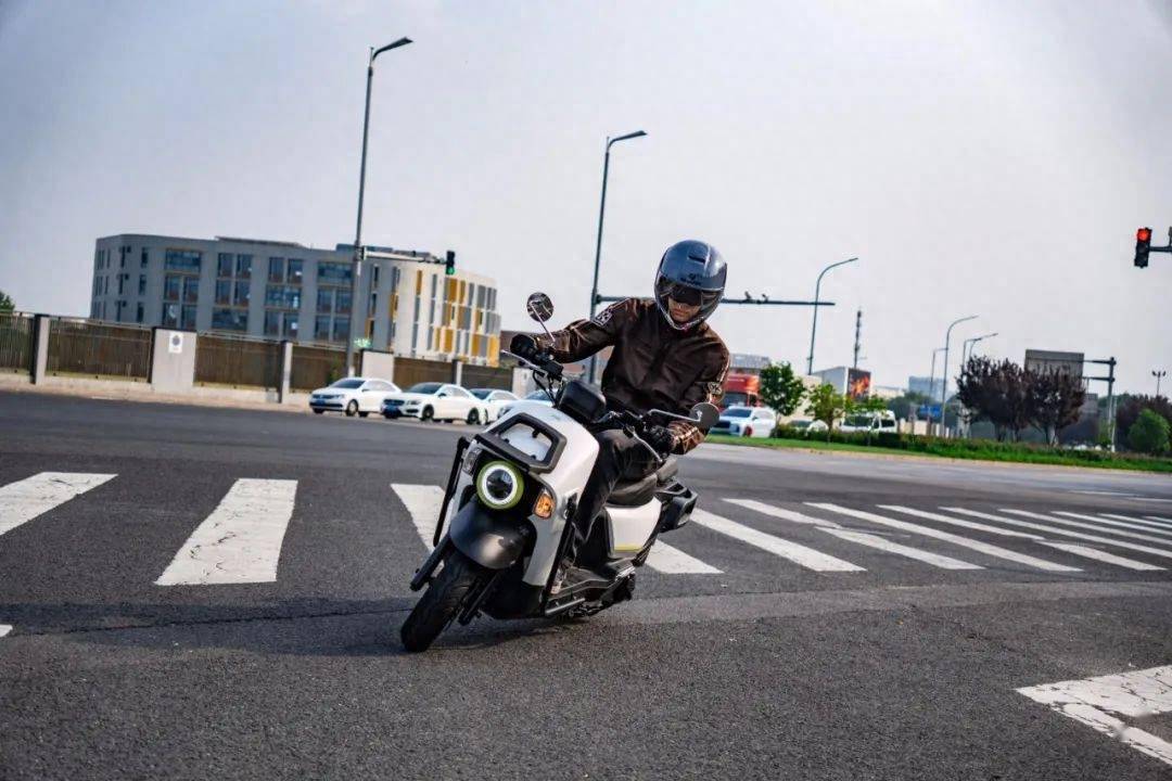我們拿到的是白色涂裝版本,看似是個(gè)簡(jiǎn)單的白色,但仔細(xì)看能發(fā)現(xiàn)白色里泛著些許粉紅色的亞光漆質(zhì)感,漆水上細(xì)節(jié)拉滿。同時(shí)這款車還有一款藍(lán)色和橘黃色雙色版本,撞色的配色看起來更加年輕時(shí)尚。所以單從外觀上,這款車就和傳統(tǒng)的實(shí)用型踏板拉開了差距。