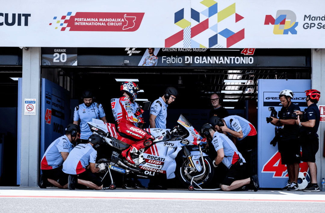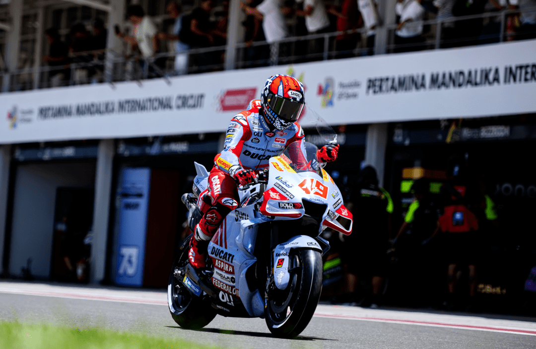 福建友力企業(yè) YOU-ALL 所支持的吉斯尼 MotoGP 車隊,在周五時的第一天競賽環(huán)節(jié)里,駕駛 73 號車的西班牙車手小馬昆斯(Alex Marquez)在 FP1 發(fā)生摔車導致肋骨疼痛,為避免觸及更嚴重的情況,他終止了印度站以來的復出之路、被迫退出了印尼站剩下的競賽環(huán)節(jié);另一位車手、駕駛 49 號車的意大利車手吉南托里奧(Fabio Di Giannantonio),在關鍵的 PR 跑出了第八快的 1 分 31.207 秒的圈速、直接進軍 Q2,他成為了本站比賽里、車隊在 MotoGP 場內(nèi)的唯一代表。