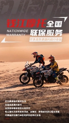 需要強調的是,“萬里比鄰無憂行”的全國聯(lián)保服務僅限于在錢江摩托官方授權的渠道,包括官方授權的門店、電商、直播等,所購買的產品才受保障。因此,廣大用戶在購買產品時,務必通過正規(guī)官方授權的渠道進行購買,并建立用戶檔案。