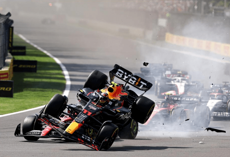 比賽以混亂戲劇的方式開(kāi)場(chǎng)。法拉利車(chē)手勒克萊爾在熱身圈時(shí)因賽車(chē)液壓系統(tǒng)故障發(fā)生撞車(chē)事故,直接沖入護(hù)欄,之后便無(wú)法繼續(xù)比賽。沒(méi)過(guò)多久,威廉姆斯車(chē)手阿爾本和哈斯車(chē)手馬格努森在第一個(gè)彎道處發(fā)生碰撞,碎片散布在賽道上,兩輛賽車(chē)都退出了比賽,比賽因此亮出紅旗而提前中斷。