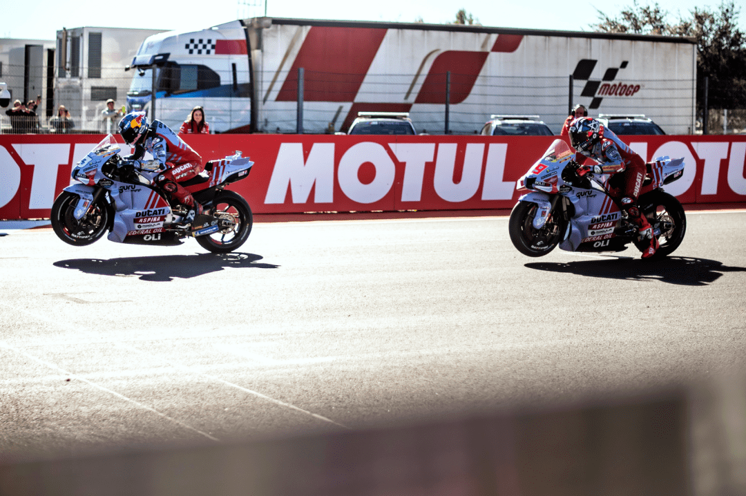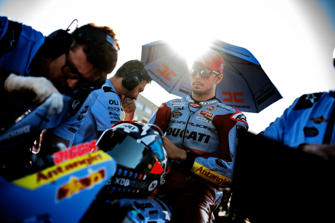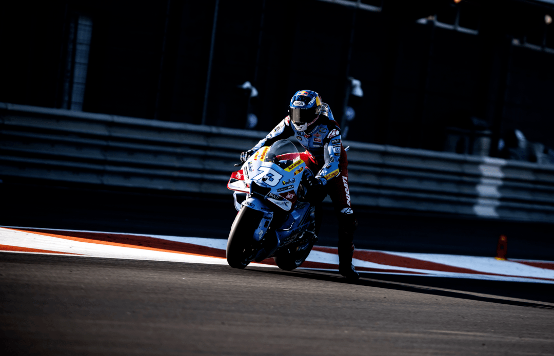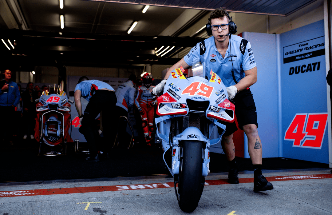 福建友力企業(yè) YOU-ALL 所支持的吉斯尼 MotoGP 車隊(duì),連續(xù)第六年、在最后一個(gè)分站的比賽里,以友力中文標(biāo)簽亮相 MotoGP。延續(xù)著此前幾站比賽里的良好發(fā)揮,車隊(duì)的兩位車手在周五進(jìn)行的首日競賽環(huán)節(jié)里,都展現(xiàn)出很好的速度:駕駛 49 號(hào)車的意大利車手吉南托里奧(Fabio Di Giannantonio)在第二節(jié)練習(xí)(PR,Practice Race 練習(xí)賽)跑出了第四快的 1 分 29.395 秒的最佳圈速,成為首批直接進(jìn)入 Q2 名單的車手之一;73 號(hào)車的西班牙車手小馬昆斯(Alex Marquez)排在第十二位、需要跑 Q1,但他也跑出了一個(gè)與隊(duì)友非常接近的圈速。