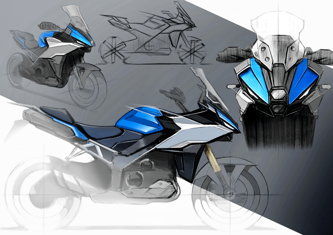 3、以 Unbridled Elegance “ 無拘無束的優(yōu)雅 ” 作為設(shè)計理念的整體外形和人機工程結(jié)構(gòu),通過銳利的線條去展現(xiàn)一個年輕化的運動形象。而為了追求最佳的空氣動力學外形,并保持外部尺寸上的相對緊湊,前整流罩、前風擋和車把兩端的護手,經(jīng)過了幾輪的分析和風洞測試,以追求一個在不犧牲靈活性的情況下、盡可能去提高騎行的舒適度;