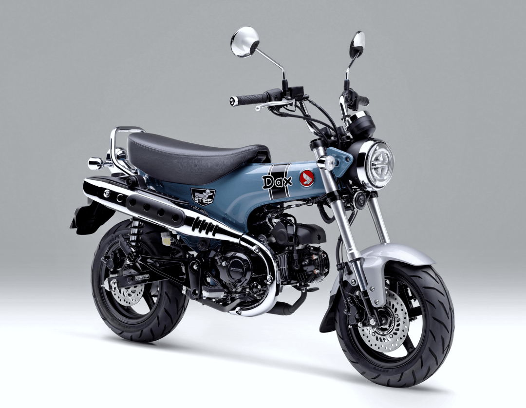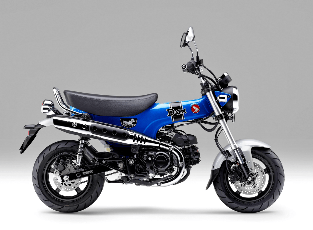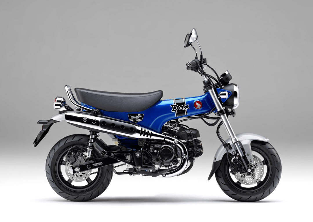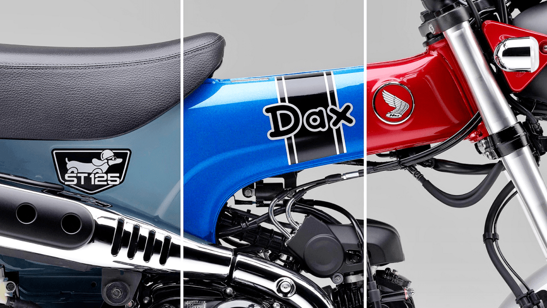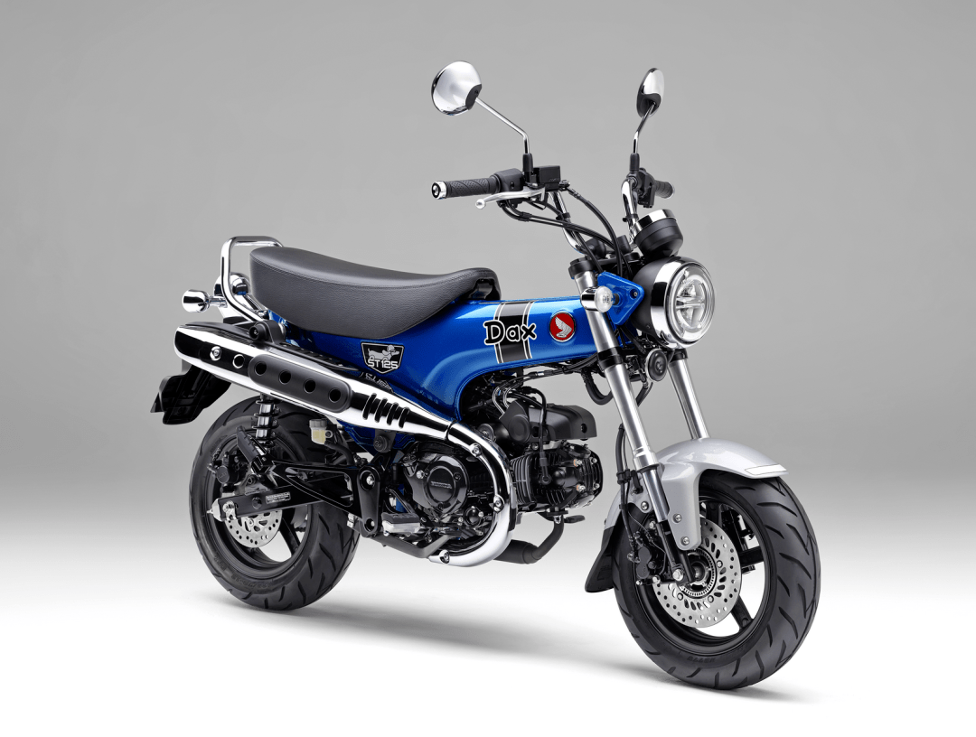 下圖是歐洲版的 2024 ST125 DAX。與日本本土版相比,歐洲版的 ST125 DAX 沒有前輪擋泥板前端的白色貼條和后輪擋泥板上的白色三角貼紙。