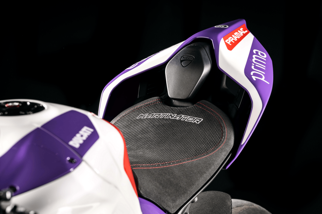 2、MotoGP 2023 年度亞軍馬丁的版本、基礎(chǔ)車是 Panigale V4 S,車身圖案采用了與 Pramac 奔馬車隊(duì)的 Desmosedici GP 相同風(fēng)格的圖案,限量生產(chǎn) 189 臺(tái);