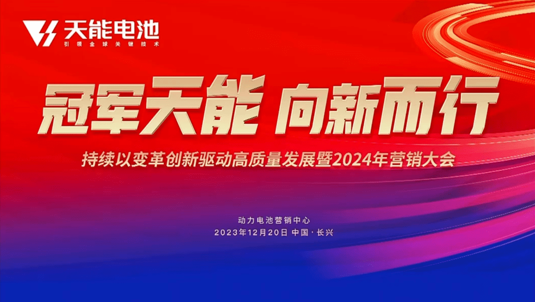 2023年12月20日,天能以“冠軍天能,向新而行”為主題的持續(xù)以變革創(chuàng)新驅(qū)動(dòng)高質(zhì)量發(fā)展暨2024年?duì)I銷大會(huì),在中國(guó)浙江長(zhǎng)興隆重舉行?;赝?023,贏戰(zhàn)2024!天能以巔峰技術(shù)、冠軍產(chǎn)品,掀開新一年的發(fā)展新篇章!