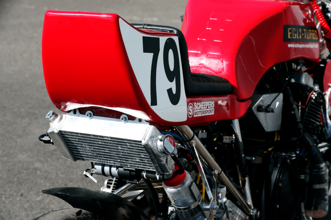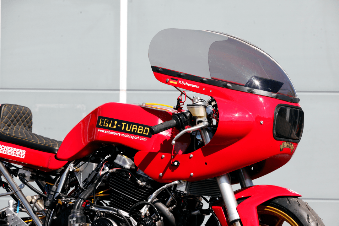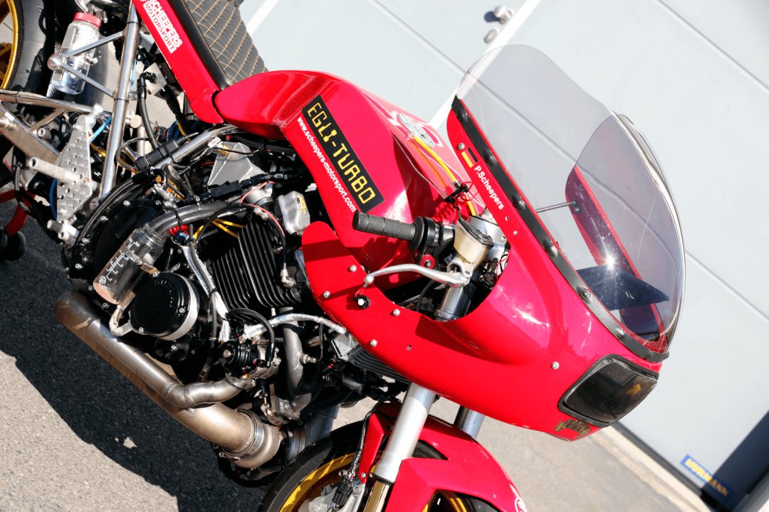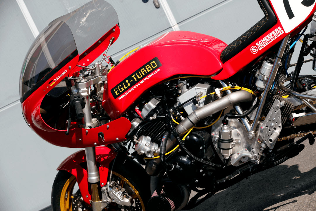 除了多個不同類型的、幾乎是原廠狀態(tài)的參賽車輛之外,多輛定制車型也參與了這次的嘗試,其中就包括了這輛名為 EGLI - TURBO 的定制車。該車由德國當?shù)刂脑鰤憾ㄖ聘难b公司 Scheepers Motorsports 制作,該公司專門為摩托車、汽車(尤其是經典型號的老式車輛)改裝渦輪增壓系統(tǒng),制作參加直線加速比賽的車輛。