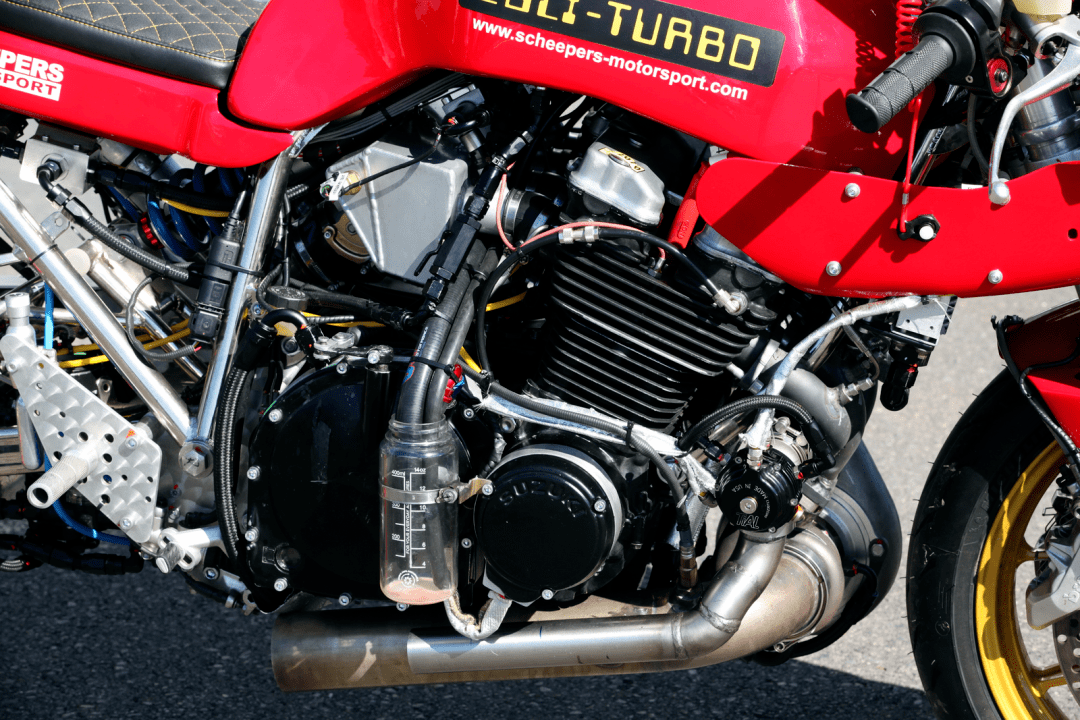 Scheepers Motorsports 未公布該車的具體規(guī)格,但可以判斷采用的是來自 Suzuki 的風/油冷直列四氣缸發(fā)動機,這副機器曾廣泛應用于 GSX1100S Katana、GSX1100F、GSX-R1100 等車型。亮點方面,該車配備了大型的渦輪增壓系統(tǒng)、為直線加速而準備的超長軸距,以及類似于 NOS/N2O 一氧化二氮(氧化劑助燃)系統(tǒng)的組件。在關鍵數(shù)據(jù)上,也許我們可以參考 Scheepers Motorsports 公司此前曾制作過的同類車型 GSX 1135 SFI Katana Turbo,峰值馬力輸出達到 200 匹 + 100 匹(助燃系統(tǒng)介入)。