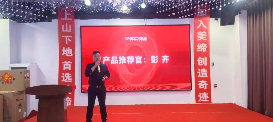 產(chǎn)品推薦官彭齊隨即上臺,為與會經(jīng)銷商講解美締電三產(chǎn)品。通過“高端差異化”的品牌理念,與自有核心4大工藝的智能工廠相結(jié)合,美締電三每一款產(chǎn)品都擁有強大的市場競爭力。并依靠強大的產(chǎn)品研發(fā)優(yōu)勢,美締電三成功實現(xiàn)“一季一爆品,季季皆旺季”,今年上市的“頭等艙”系列更是憑借強大產(chǎn)品力,助力商家奏響市場最強音。