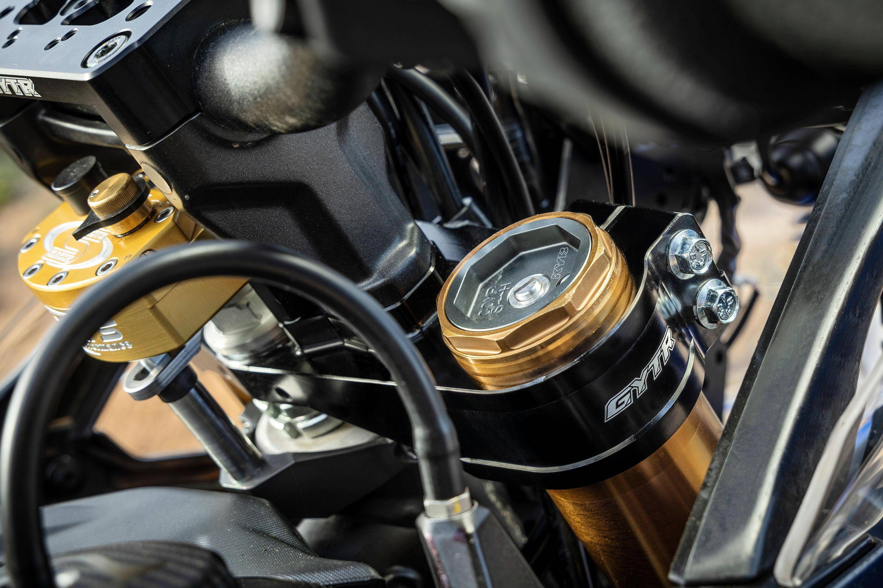 4、XTZ700 World Raid GYTR 高性能操控套件,主要針對拉力賽設(shè)計(jì),套件包括了 KYB 配套的賽車前叉(叉芯口徑 48 mm、帶黑色的 DLC 涂層,行程增加至 270 mm);GYTR 的鋁合金 CNC 制上下三星(前叉三角臺);25 級設(shè)置的 Scotts 方向阻尼器,Paioli 的全可調(diào)后減震;輕量化、并有著更高強(qiáng)度的 Excel 輪框和 CNC 制輪轂;