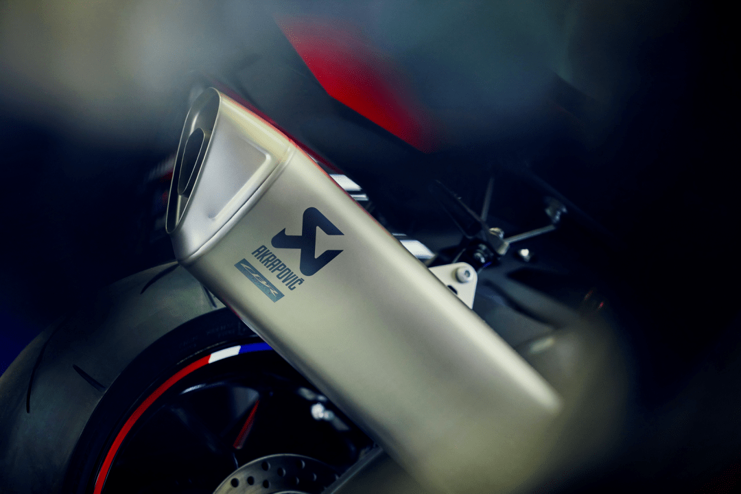 6、與 Akrapovic 合作制成的消聲器由鈦制成,體積小、重量輕,2024 款的消聲器比現(xiàn)行款的噪音值降低了 5 分貝;
