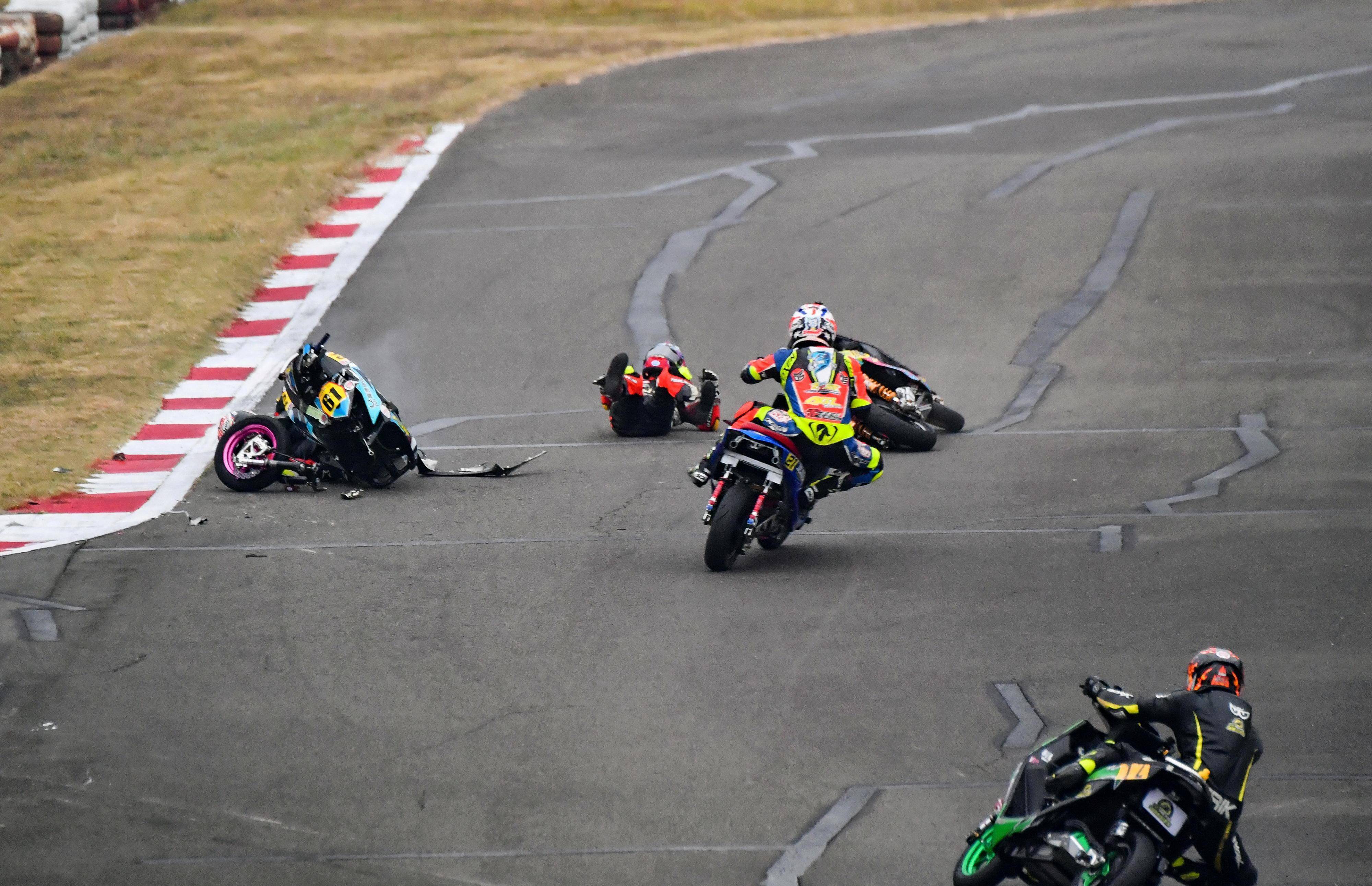 第一節(jié)的比賽(決賽一)僅僅跑了兩圈就因?yàn)橐馔舛患t旗所終止:李俊的賽車(chē)突然失去了動(dòng)力而慢了下來(lái),幾秒鐘之后,隨后還在格斗中的車(chē)群里,駕駛 61 號(hào)車(chē)的蒙浩國(guó)避讓不及、直接從后撞到了李俊的賽車(chē),雙雙倒地之后沒(méi)多久,賽事被迫暫停。