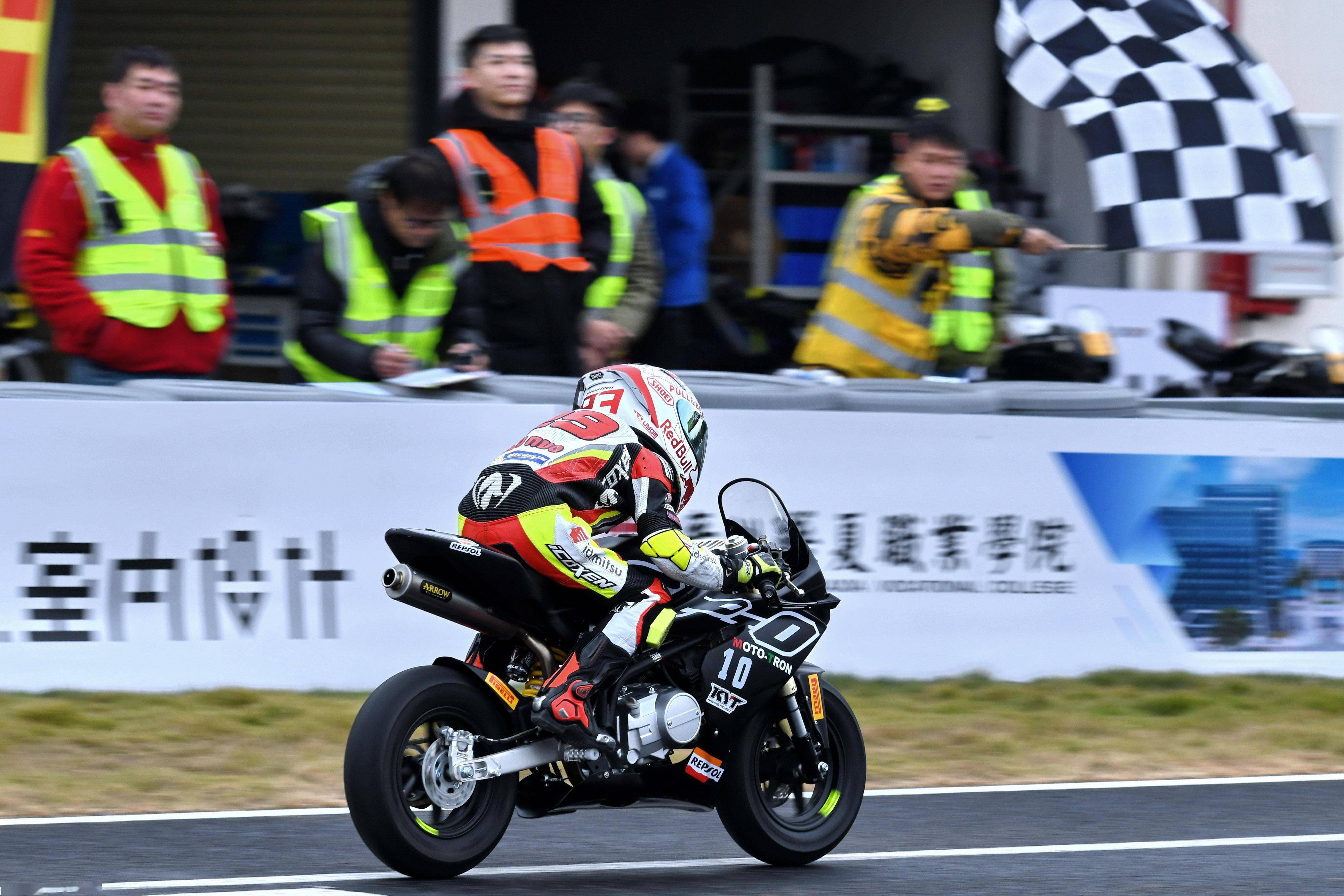 GCIC Ohvale 青少年錦標賽、2023 第一站的比賽,2023 年十二月 23 - 24 日在廣州從化國際賽車場舉行。駕駛 10 號車、參加 GP-0 110 cc 組(自動檔組)的寇文瑞,從全場第三、組別第一的位置起跑,兩節(jié)的比賽里,都拿下了全場第三和組別的第一,他最終獲得了這場揭幕戰(zhàn) GP-0 110 cc 組(自動檔組)的冠軍,并在第一節(jié)比賽里,首次跑進了 1 分 06 秒級別(1 分 06.439 秒)的最佳圈速,突破了他自己在賽前 1 分 07 秒的圈速時間。