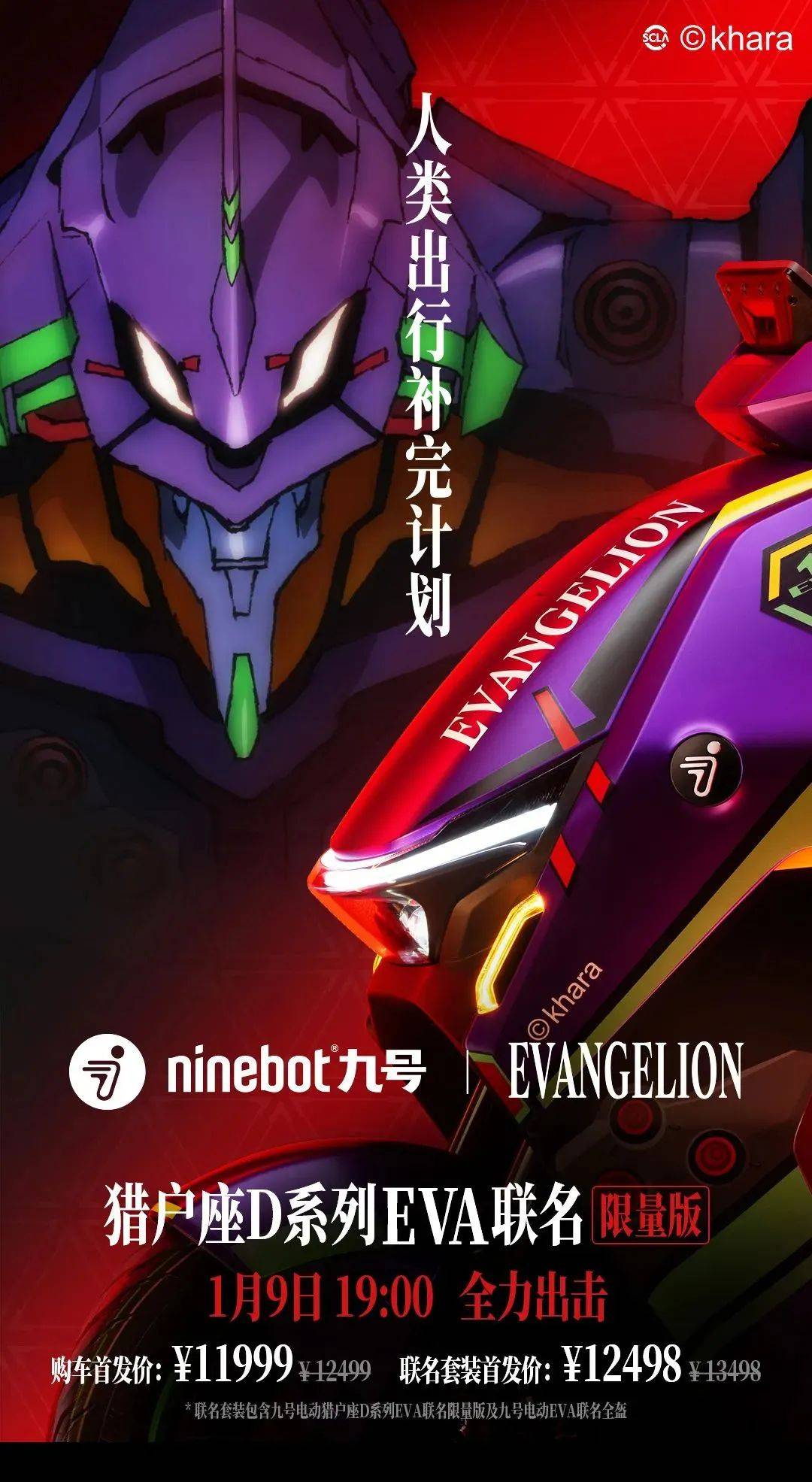 在新品發(fā)布環(huán)節(jié),宣布了與新世紀(jì)福音戰(zhàn)士EVAEVANGELION(以下簡(jiǎn)稱EVA)攜手推出限定聯(lián)名企劃的消息,正式發(fā)布了九號(hào)電動(dòng)獵戶座D系列EVA聯(lián)名全球限量版、九號(hào)電動(dòng)EVA聯(lián)名全盔等新品。