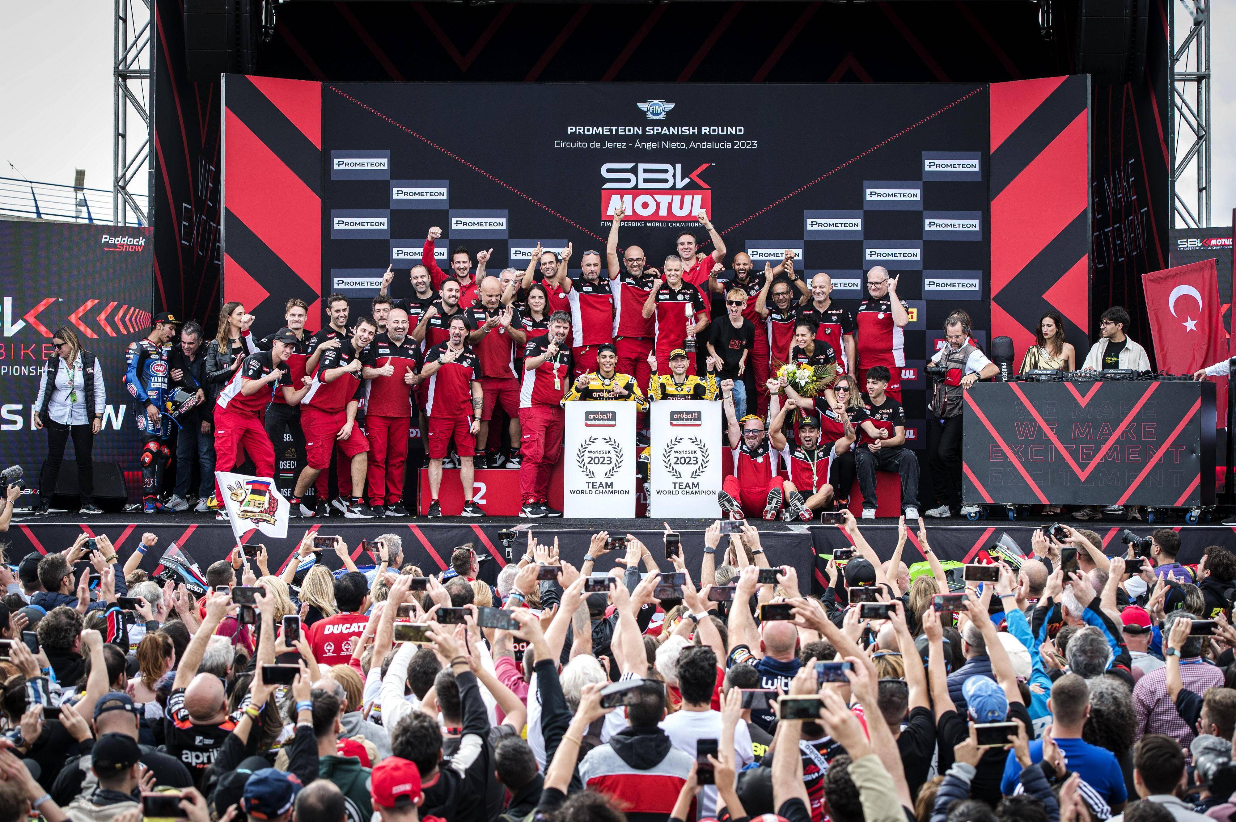 下面的圖片,奪得了 2023 WorldSBK 和 WorldSSP 世界冠軍、制造商冠軍的杜卡迪陣營(資料圖片)。