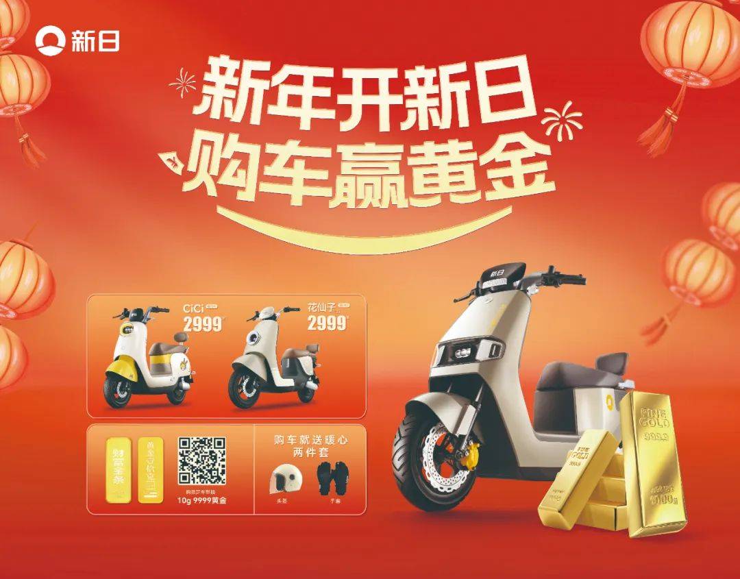 今年開年,新日再次強(qiáng)勢加碼“贈金”力度!活動期間只要走進(jìn)新日門店購買參與本次活動的新日電動車產(chǎn)品,就有機(jī)會獲得10g的9999千足金!今年黃金價(jià)格上漲,今年新日誠意更足!