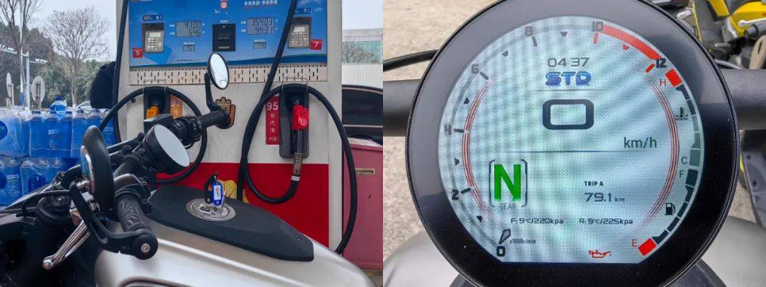 油耗測試方面在我們經(jīng)過暴力駕駛下來,重新加注滿燃油,共加注 5.46L汽油,累計行駛里程為79.1km,得到測評油耗為6.9L/100km,結(jié)合網(wǎng)上部分用戶的反饋,實際日常平均油耗應該在6-7升之間,完全處在正常水準,原廠16L的油箱,日常最大續(xù)航在250公里左右,對于日常和短途使用是夠用的,長途摩旅的話就要注意下油量了。
