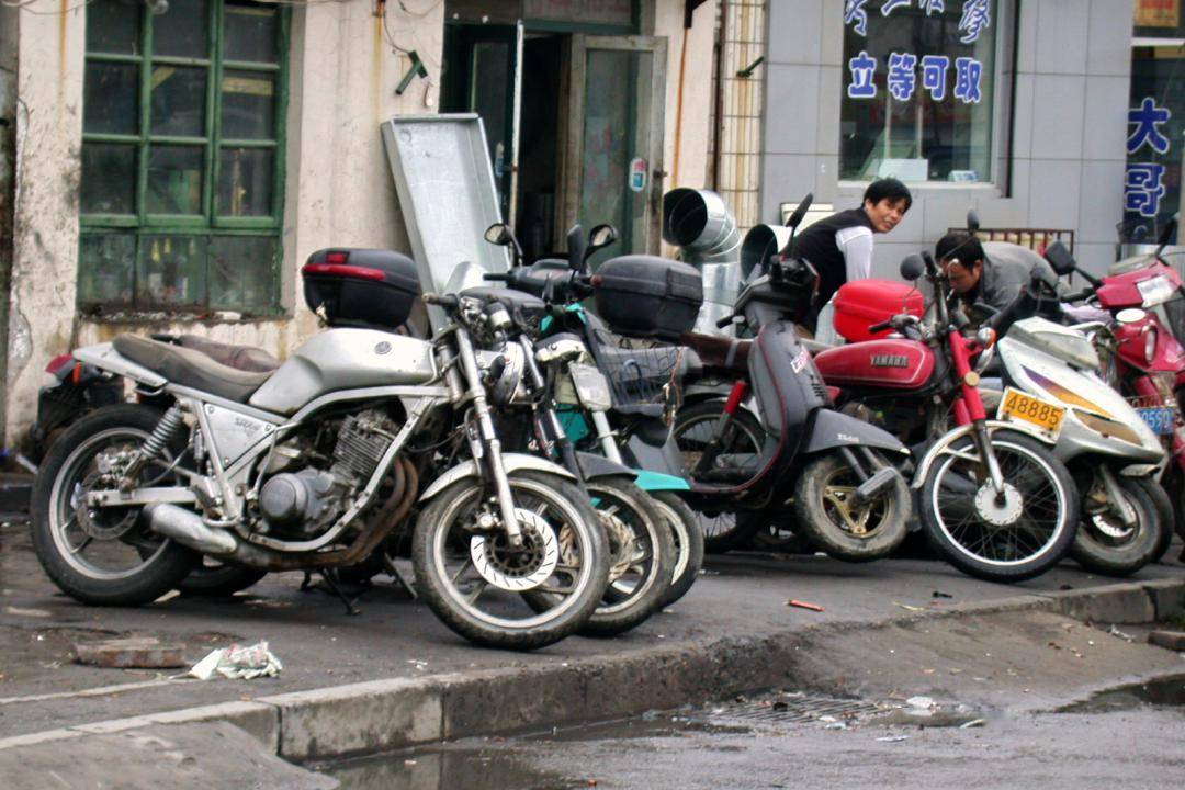 下面的圖片攝于 2001 年、位于天津的一家維修店門前(資料圖片)。