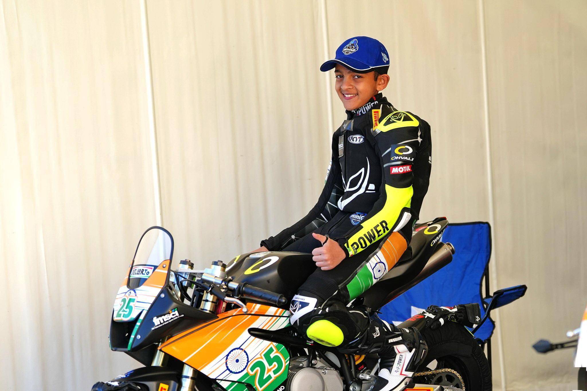 下面的圖片,F(xiàn)IM MiniGP 世界系列賽 2023 西班牙年度總決賽里的印度車(chē)手(資料圖片。圖片來(lái)源:FIM MiniGP)。