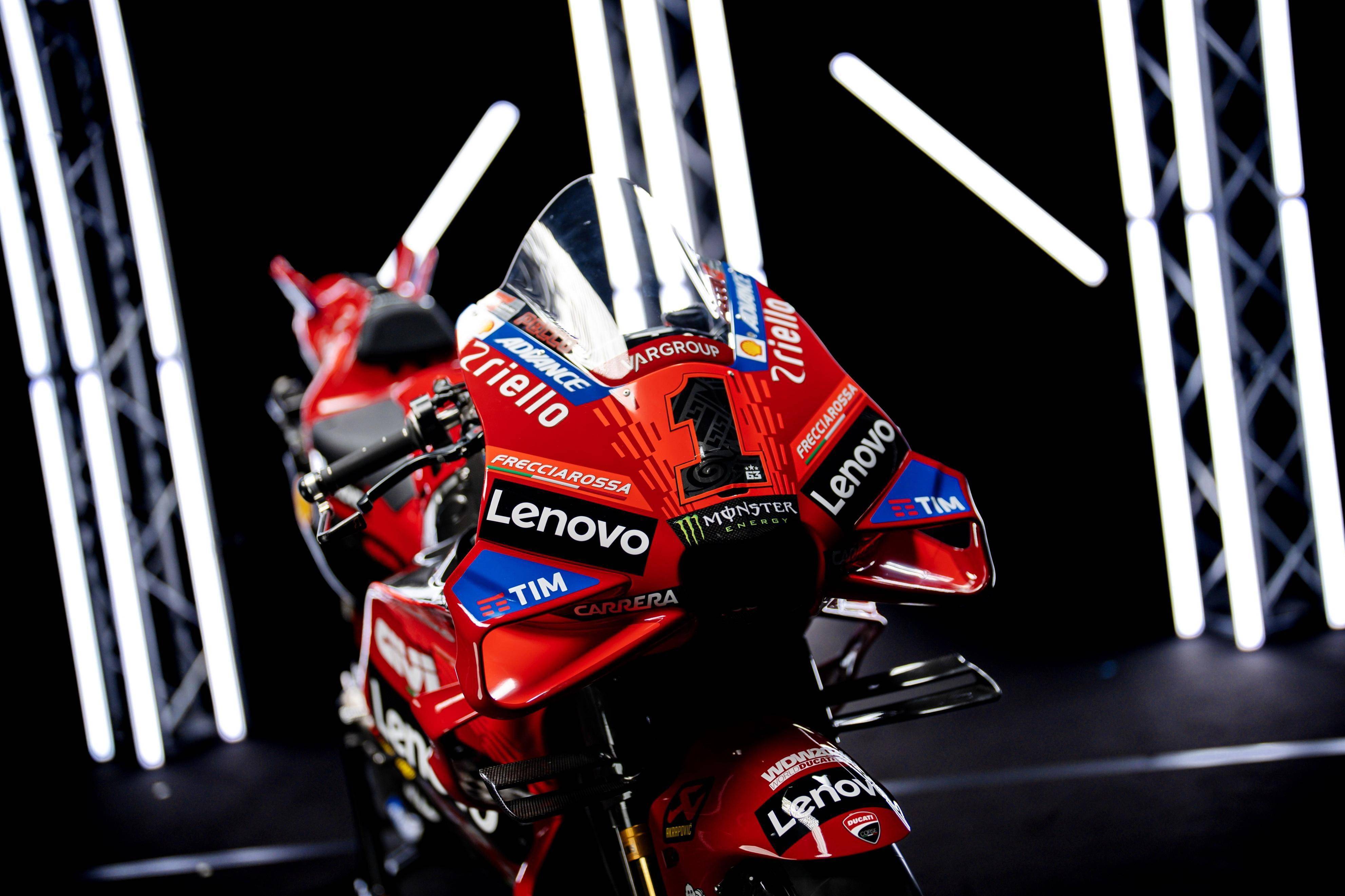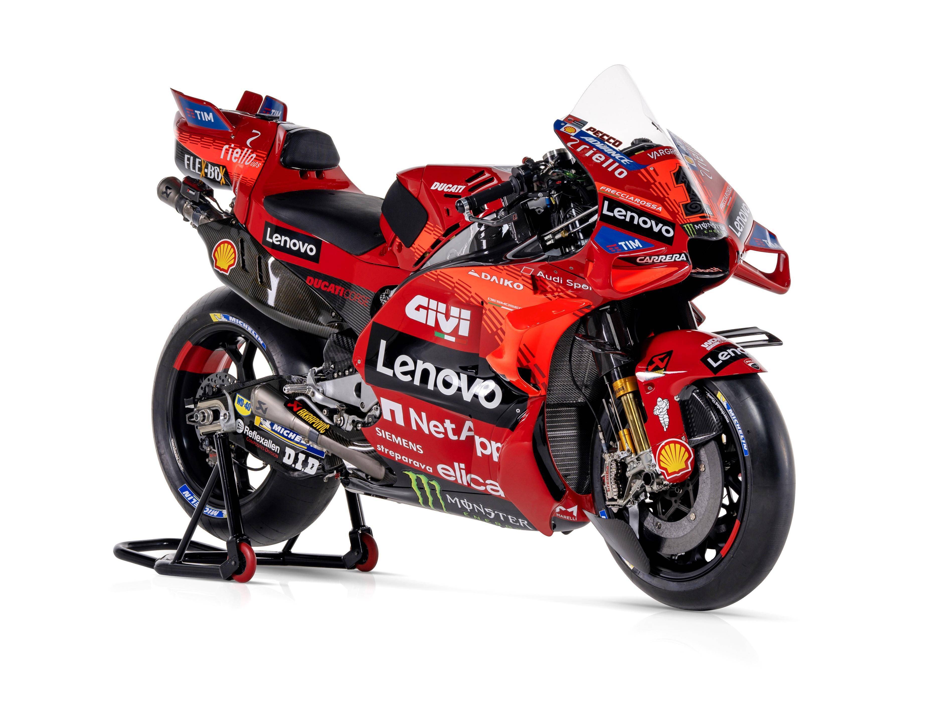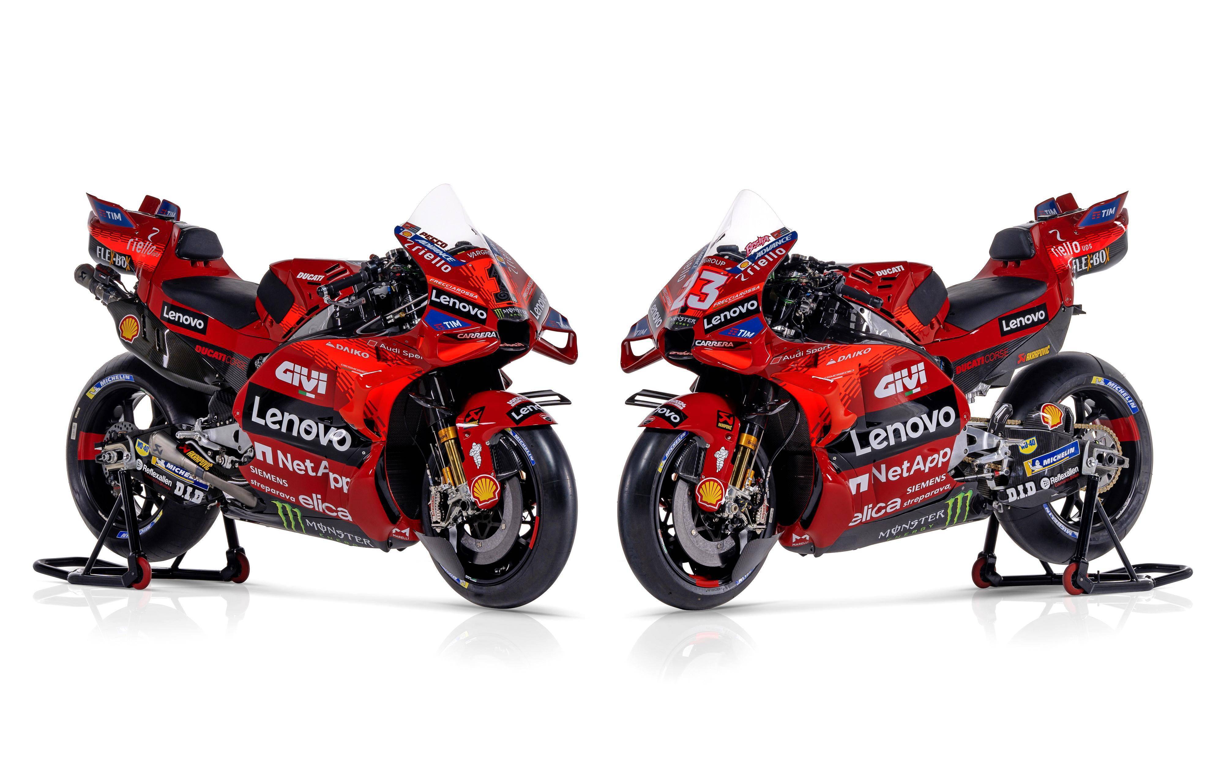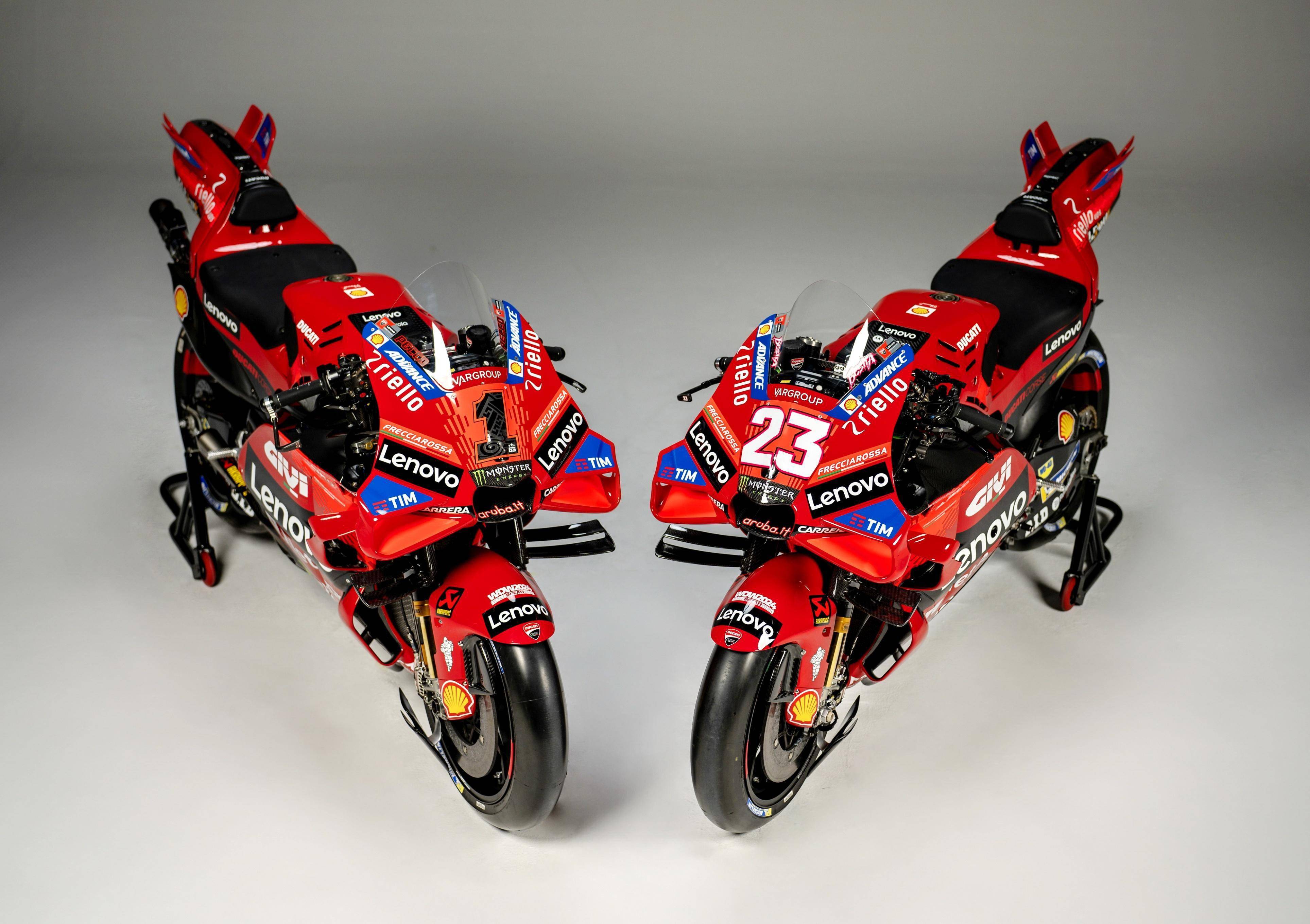 MotoGP 級別,杜卡迪工廠車隊維持了去年的、全意大利的參賽陣容:應(yīng)屆世界冠軍、1 號車的巴納亞(Francesco Bagnaia),以及 23 號車的巴斯塔尼尼(Enea Bastianini)。而測試車手仍是來自意大利的皮洛(Michele Pirro)。