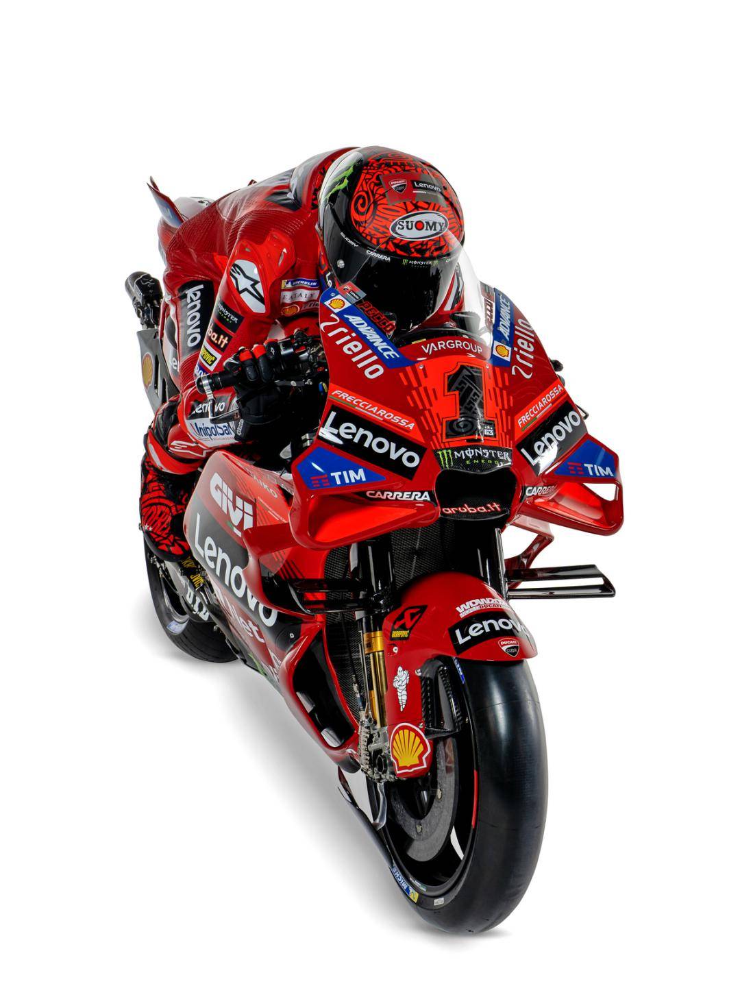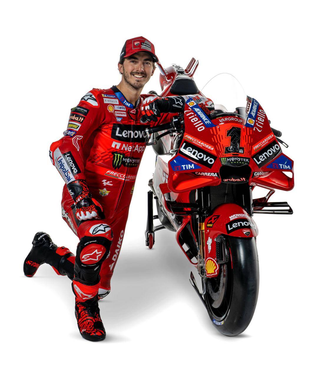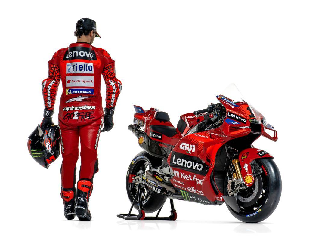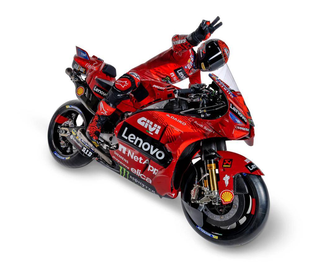 MotoGP 級別,杜卡迪工廠車隊維持了去年的、全意大利的參賽陣容:應(yīng)屆世界冠軍、1 號車的巴納亞(Francesco Bagnaia),以及 23 號車的巴斯塔尼尼(Enea Bastianini)。而測試車手仍是來自意大利的皮洛(Michele Pirro)。