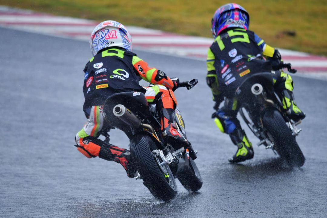 為期兩天的比賽,都在低溫、濕地之下進(jìn)行,到了周日(一月 28 日)的第二節(jié)正式比賽在上午進(jìn)行,比前一天午后進(jìn)行的第一節(jié)比賽,氣溫更低、且雨勢(shì)也更大。入門級(jí)的 Ohvale GP-0 110 cc 組、在這樣的天氣條件下拉開了第二天較量的序幕。