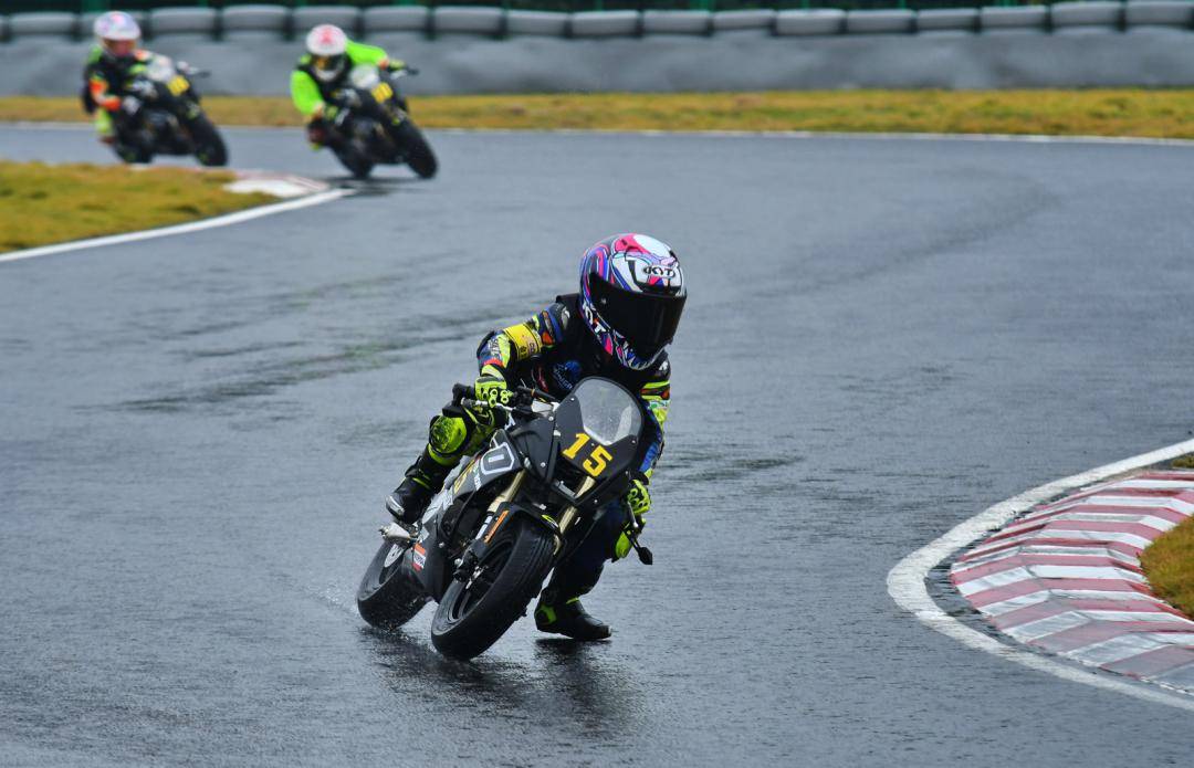 A 自動(dòng)檔組的競(jìng)爭(zhēng)、是第二節(jié)比賽里的重要焦點(diǎn),17 號(hào)車的劉易瑄、18 號(hào)車的林景源、16 號(hào)車呂思穎、10 號(hào)車的寇文瑞,四位最佳圈速都相近的小車手,在水花飛濺的大半場(chǎng)比賽里,為觀眾們奉獻(xiàn)了扣人心弦的精彩角逐。劉易瑄最終率先沖線、拿下了全場(chǎng)第二和組別冠軍;隨后沖線的林景源因?yàn)榘l(fā)車的時(shí)候、賽車壓線,被罰時(shí) 15 秒,他最后拿到了組別第四名;呂思穎和寇文瑞分別獲得了組別的亞軍、季軍。