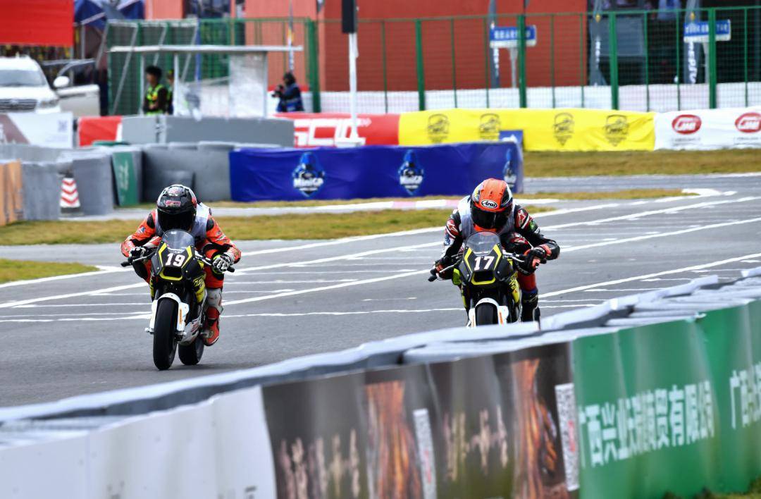 兩節(jié)的正式比賽里,龍俊豪都保持著一個快速的節(jié)奏,他也是比賽初段、唯一能夠沒被伊凡帶遠的中國車手。最終,他在兩節(jié)比賽里都順利奪得了亞軍。困擾于輪胎問題的陳詩瑜、第一節(jié)比賽以第四名完賽,第二節(jié)比賽、尾隨在隊友后面的她奪得了季軍,與隊友一起登上了頒獎臺。