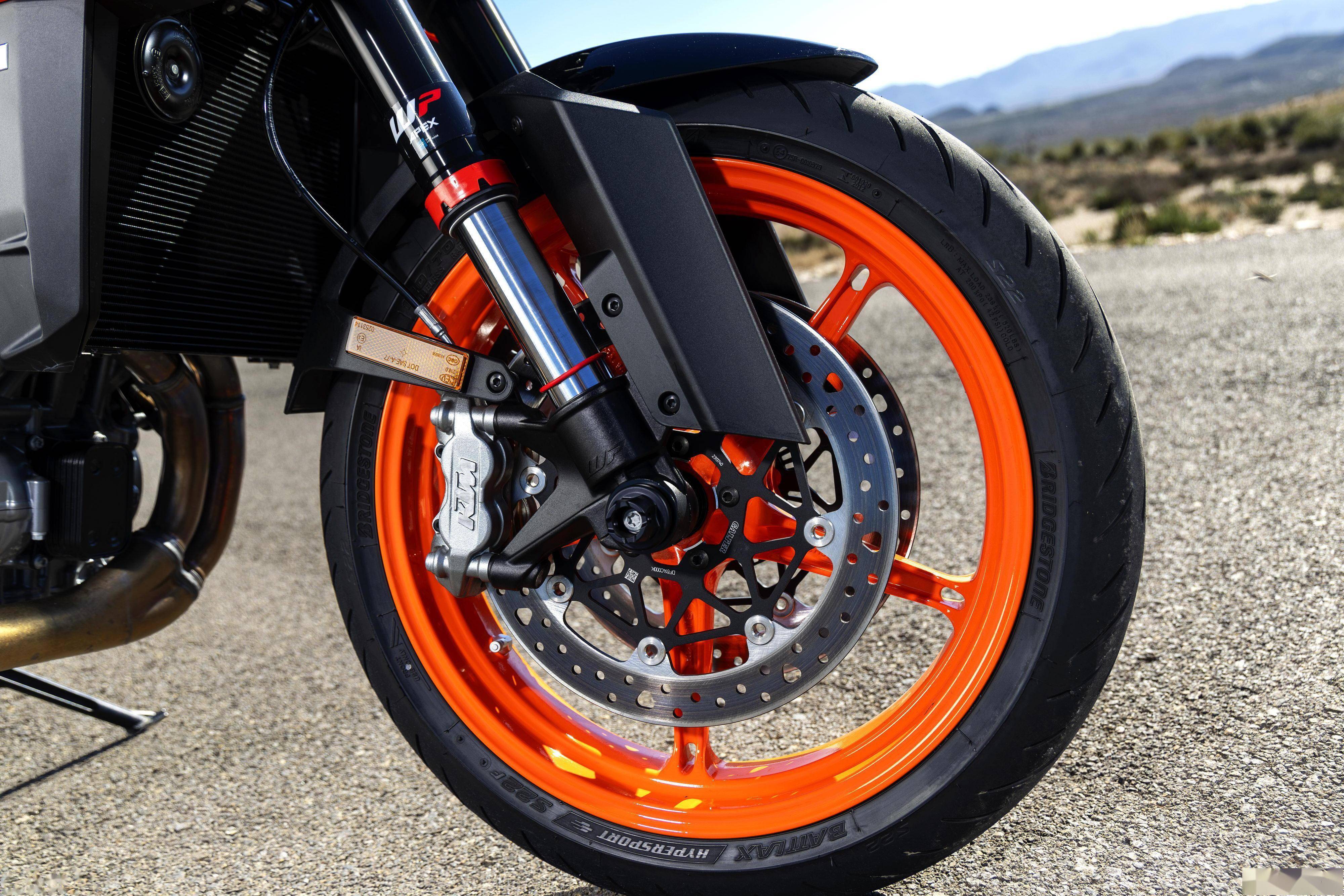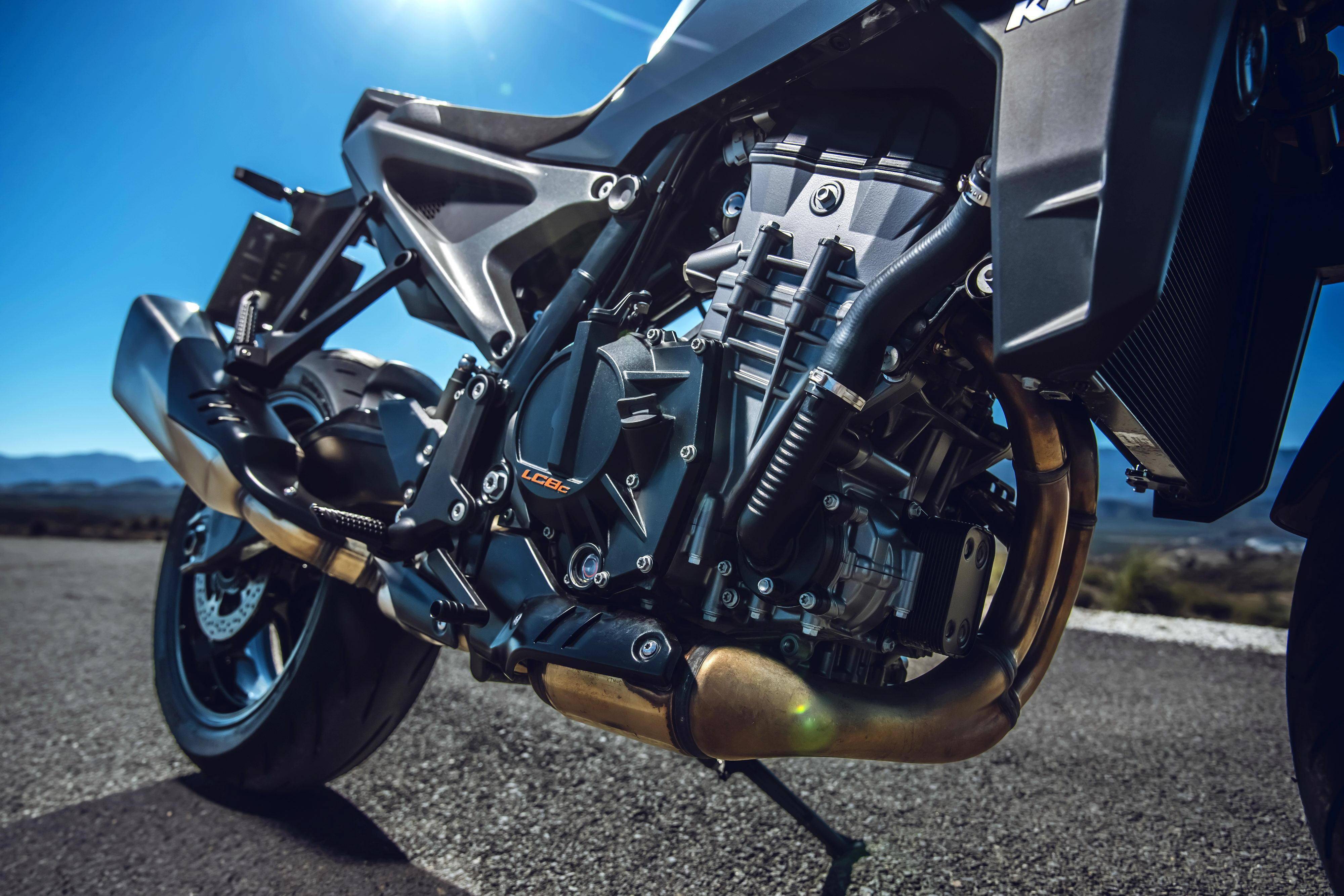 KTM 這款新的運動街車 990 Duke 搭載一副水冷四沖程直列兩氣缸、DOHC 每氣缸四氣閥的 LC8c 發(fā)動機,排氣量 947 cc,最大動力輸出 123 匹(890 Duke 歐洲版的最大動力輸出為 114 匹)。車體采用一副經(jīng)過全新設(shè)計的鋼管式車架,全新的尾樑(副車架),比 890 Duke 更輕的新型鋁制后搖臂;采用一個充滿鋒利感的外觀造型,外星人風(fēng)格、獨特的前大燈造型;WP 配套的懸掛系統(tǒng),TFT 全彩色的數(shù)字式儀表板等。電子控制系統(tǒng)方面,標(biāo)配了三個可選(Rain 雨天、Street 街道、Sport 運動)的騎行模式,另可選裝 Performance 高性能和 Track 賽道模式;標(biāo)配了 Supermoto ABS。