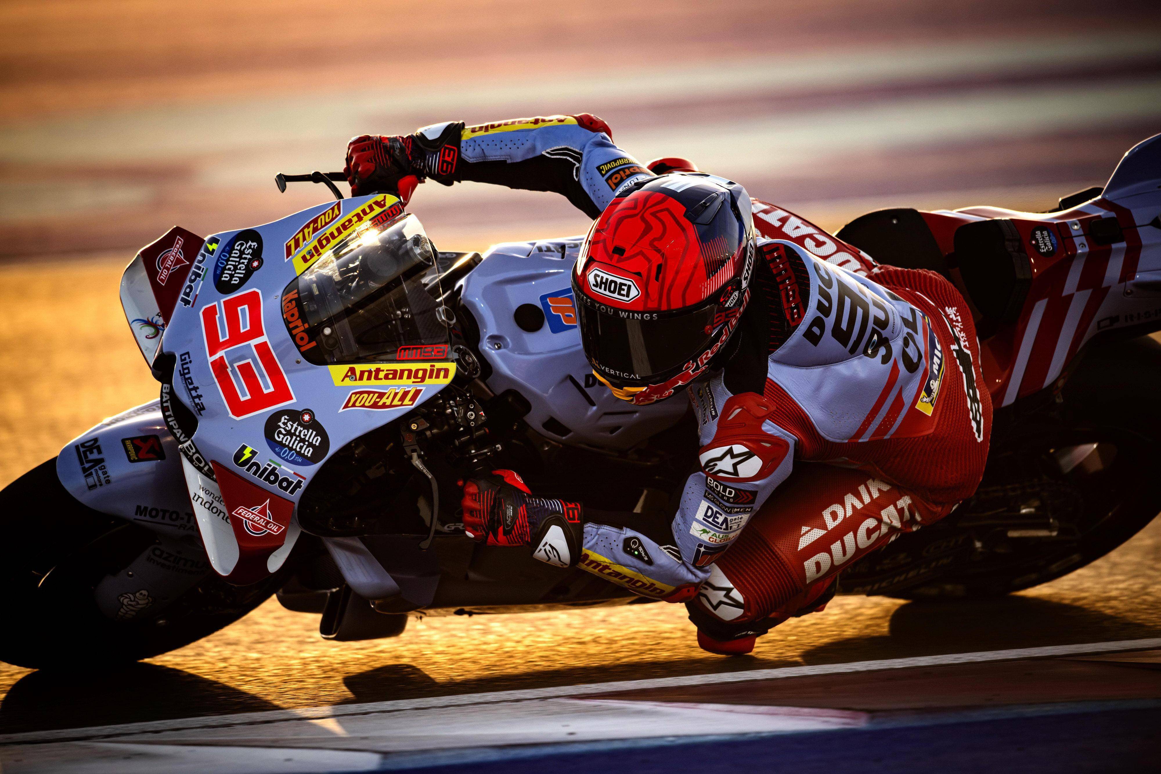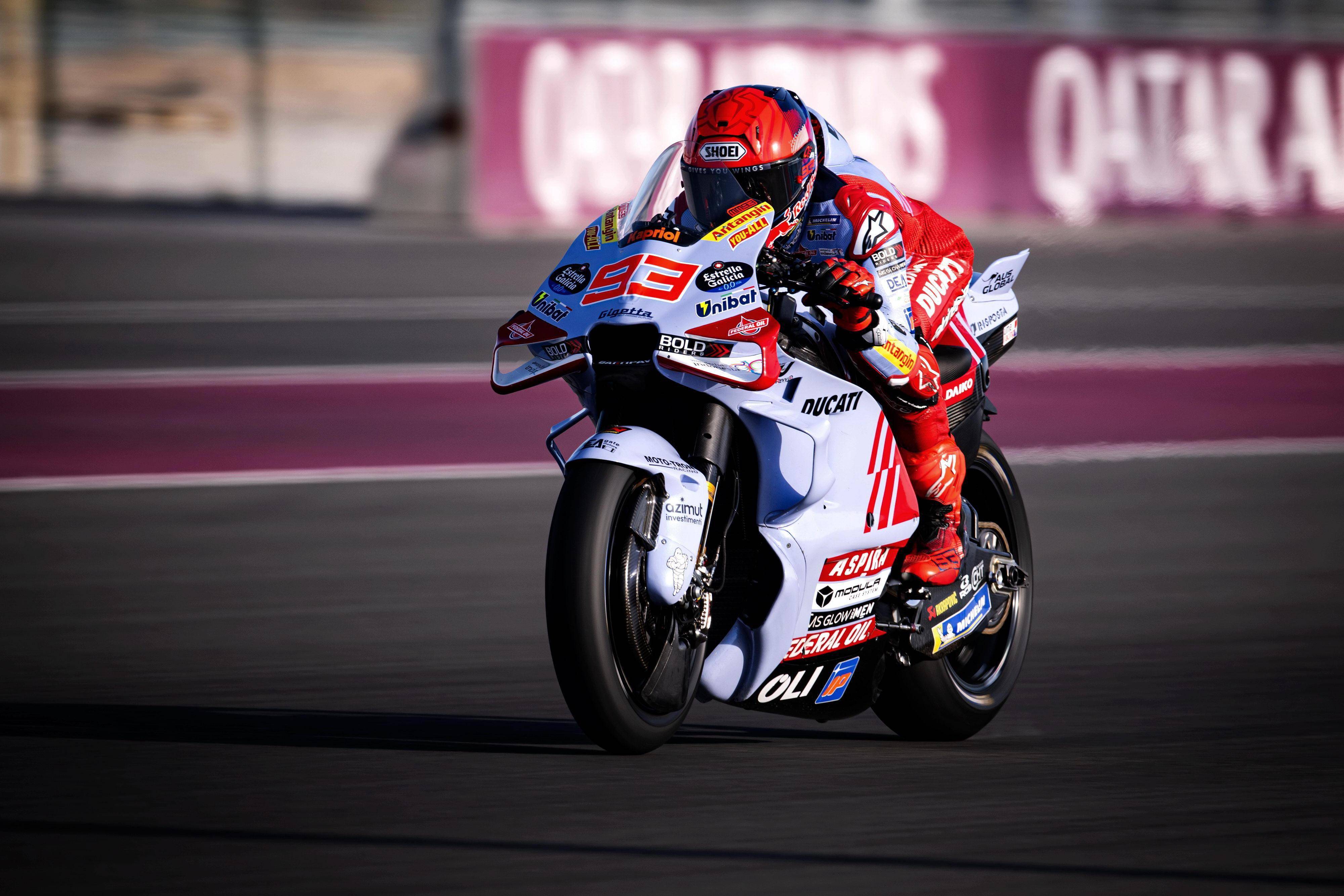 繼二月初、上一輪的雪邦(Sepang)季前測(cè)試中有著出色的表現(xiàn)之后,這次卡塔爾為期兩天的測(cè)試?yán)?,吉斯?MotoGP 車隊(duì)的兩位車手都努力嘗試進(jìn)一步挑戰(zhàn)自己和賽車的極限,這使得他們都先后發(fā)生了摔車意外、幸好兩人都沒有受傷。而 2024 將是馬昆斯首個(gè)駕駛 Desmosedici GP23 賽車參戰(zhàn)的賽季,他在兩天的測(cè)試?yán)?、累?jì)跑了 100 圈,在第二天的測(cè)試?yán)?,他跑出?1 分 51.335 秒、全場(chǎng)綜合第四快的圈速,這個(gè)時(shí)間比盧塞此前的圈速紀(jì)錄(1 分 51.762 秒)還要快,這顯示他對(duì)新賽車的適應(yīng)、正漸入佳境。