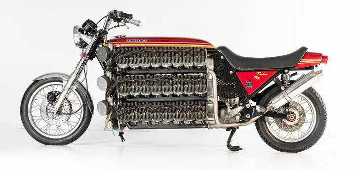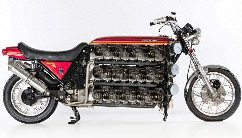 有不少騎手把缸數(shù)的增長看做騎行生涯的進階之路,多數(shù)騎手也是從單缸向雙缸、三缸、四缸甚至六缸升級。摩壇也出現(xiàn)過十幾缸的“改裝怪胎”,但是當一臺48缸的摩托車擺在眼前,大家會是什么感覺呢?這就是一臺名為“Tinker Toy”的魔改版川崎摩托車。