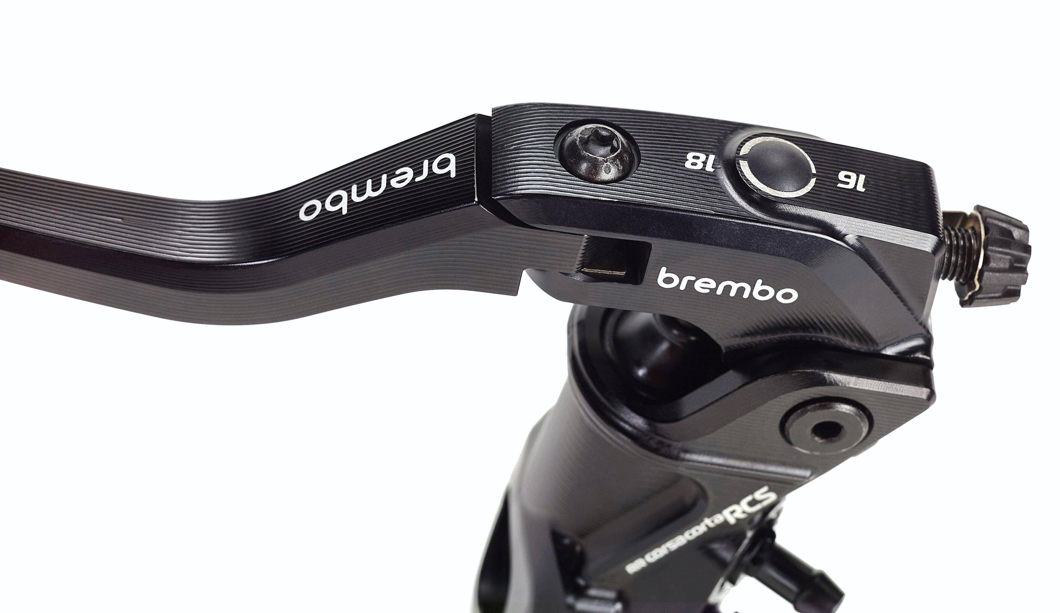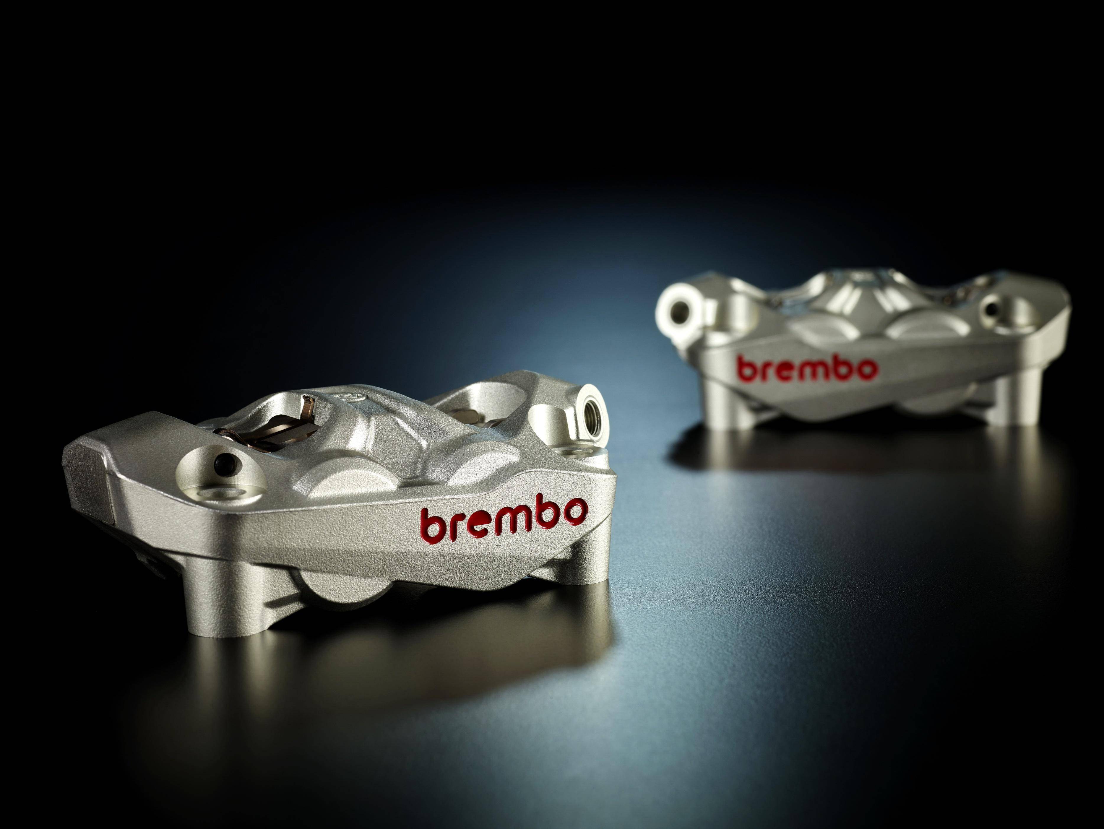 下面的圖片,布雷博在去年十一月發(fā)布的、采用不對(duì)稱設(shè)計(jì)的 Hypure 卡鉗,GP4-MotoGP 卡鉗,以及 16 RCS Corsa Corta 離合器上泵(資料圖片)。